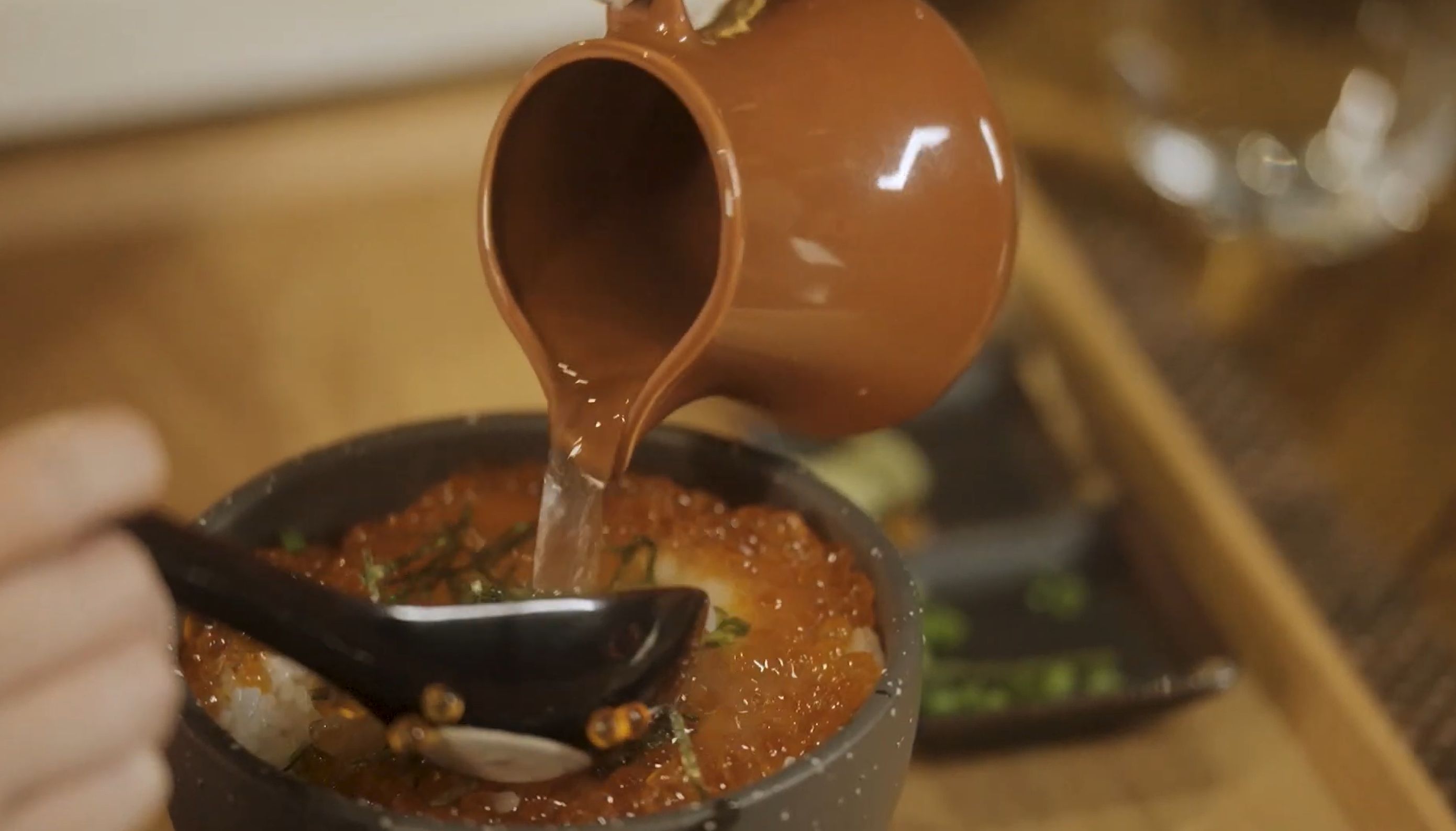 晚餐有烤北海道花魚、牛油烤北海道帶子、三文魚籽茶漬飯、北海道鹿肉薄片配鮮果醬汁、抹茶雪糕茶香芭菲。