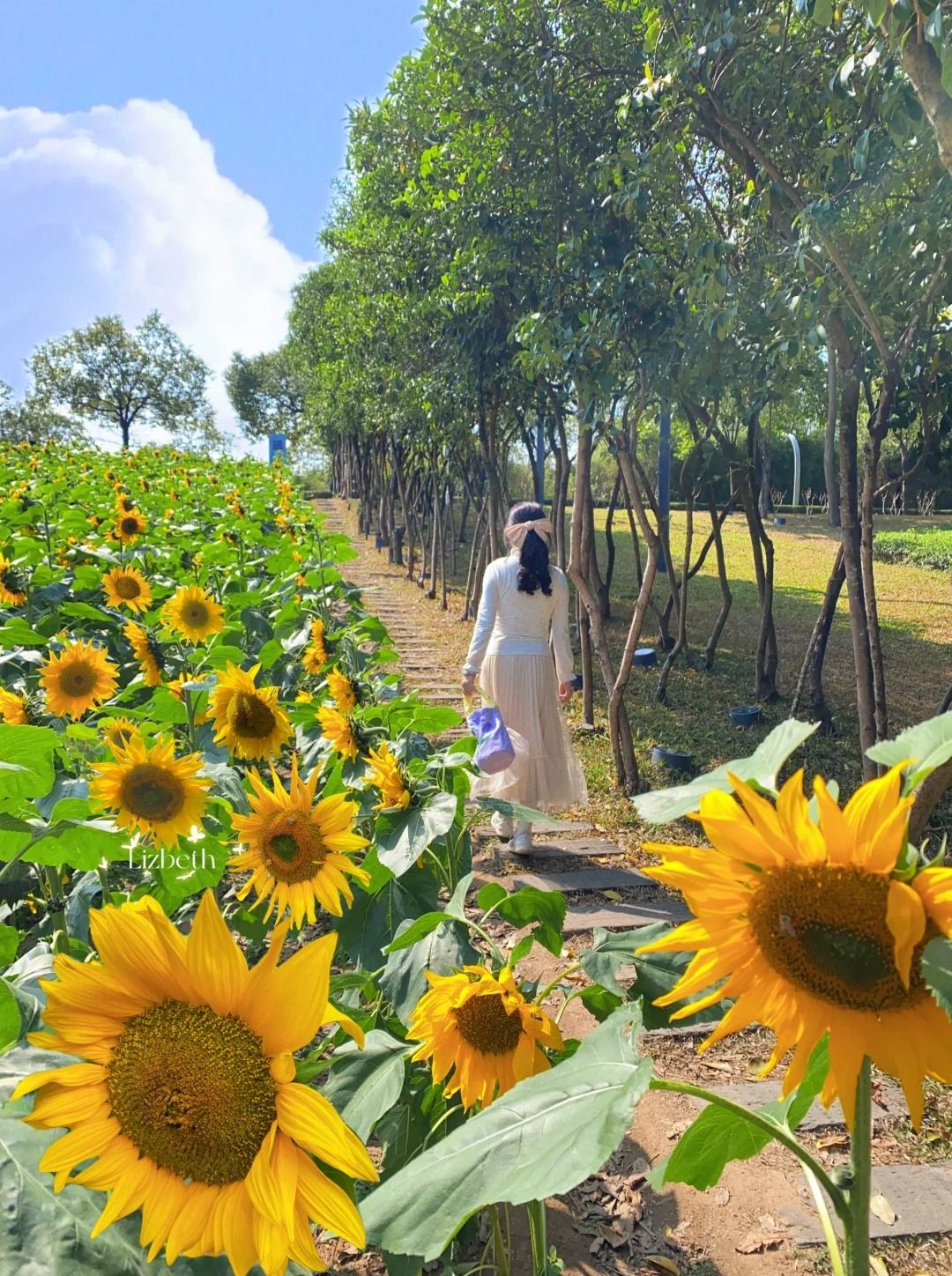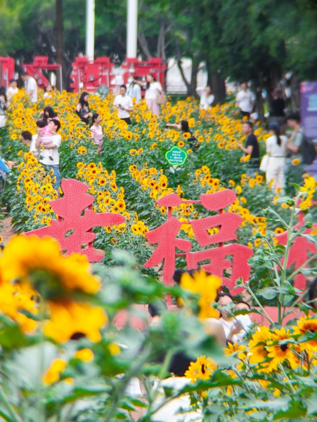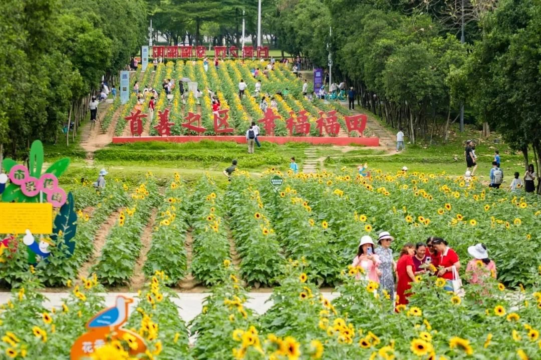 這片花田位於深圳市福田區市民中心南廣場中軸線,由大門走200米即達,面積約3300平方米,大約有10000 株成年人高的向日葵在盛放,由深圳的義工幫忙栽種。每塊花田之間有小路,遊客可以走近向日葵影相(珍惜樹木,勿為打卡做出破壞行為)。