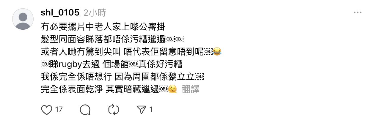 💬「睇rugby去過 個場館卿真係好污糟,我係完全係唔想行 因為周圍都係黐立立,係表面乾淨 其實暗藏邋遢」
