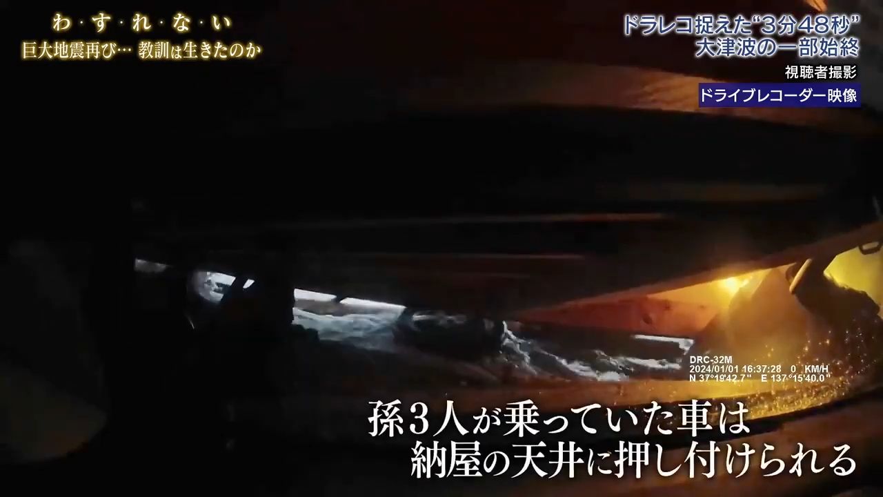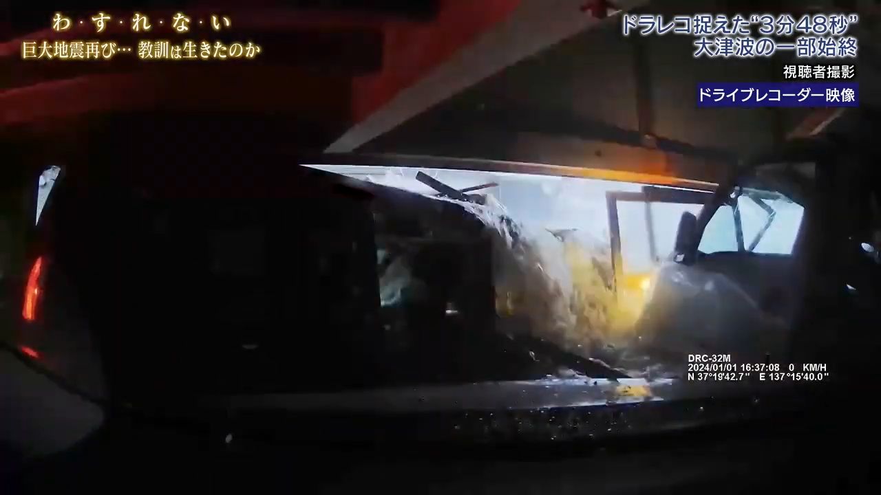 時間為下午4時37分02秒,不過是7秒的時間,大量海水已把七人車沖向佐藤先生車庫,佐藤先生的外孫女仍在車上。