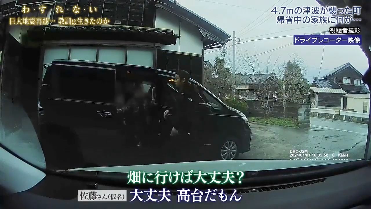 影片拍攝地點在佐藤先生家車庫前,當時已有海嘯警報發出,車庫外停泊了佐藤先生女兒一家的七人車,車庫內則有佐藤先生的汽車。