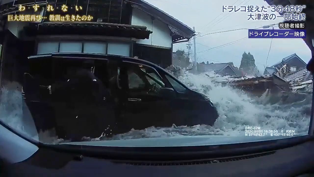 【日本海嘯/日本天災/海嘯危機/海嘯/石川縣海嘯/人命傷亡/能登半島地震/日本南海海槽巨大地震】日本南海海槽巨大地震最新預測,表示若發生M9級地震,可能引發30米高海嘯,並會在地震後3分鐘淹至受災區域,究竟海嘯有幾可怕?最近Threads上流傳一段2024年1月1日M7.6級能登半島地震所引發海嘯的片段,地點在石川縣白丸鎮的一間日本住宅車庫前方,當時已發出海嘯警報,當時屋主佐藤先生與女婿只是想確認道況安全,但海水在22秒淹至,瞬即把倉庫前的七人車沖走,連帶亦沖毁佐藤先生車庫天花,海嘯來襲的速度之快令人逃生無門。