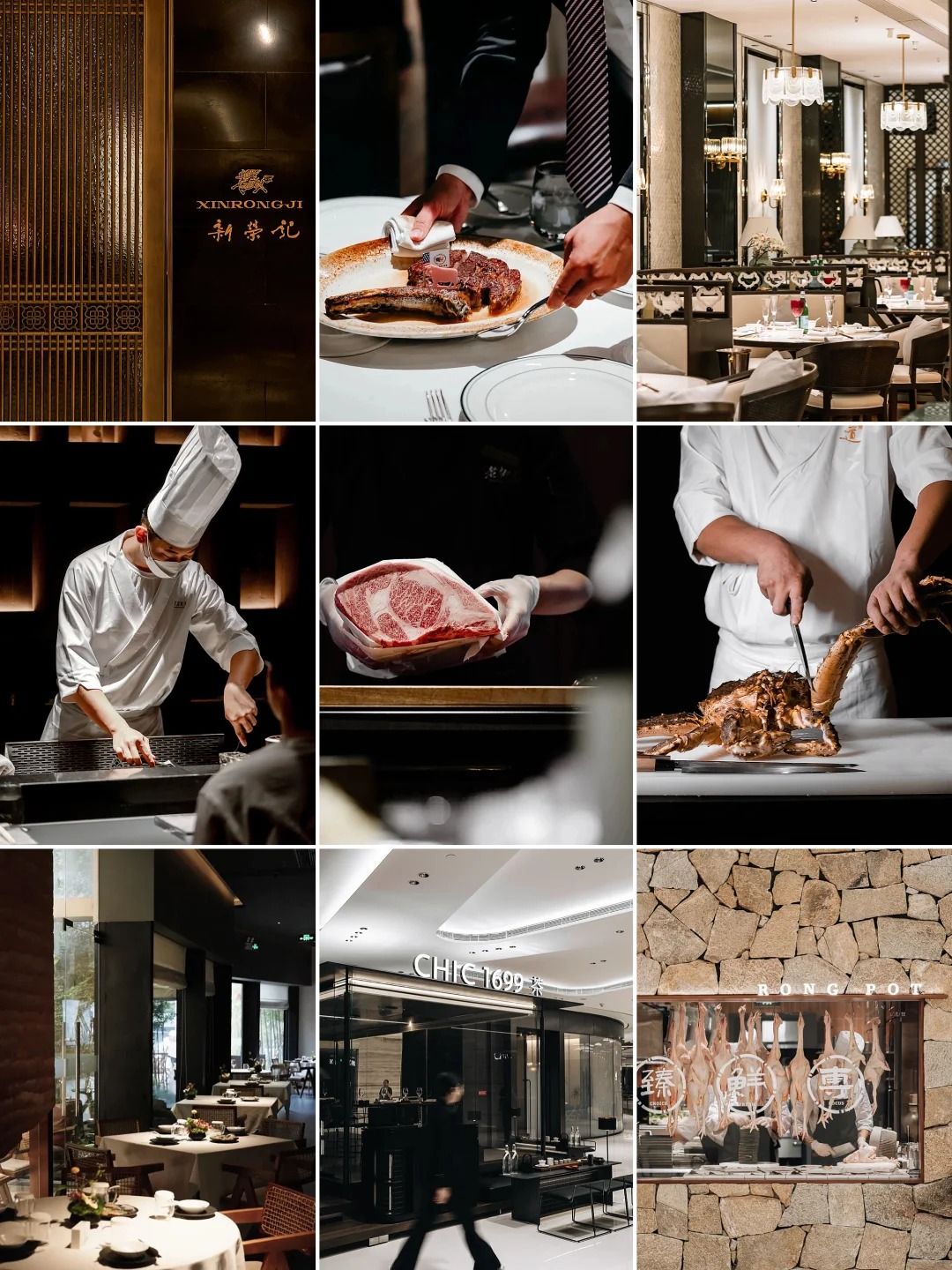 包括如台州菜「新榮記」、全球首間榮獲米其林星級的日式燒肉「老乾杯」、沃夫岡牛排館、老乾杯、鶯時TOKI、喜公館、蟹道、湘頌 · 國藩家宴、高級福建菜「CHIC1699 遠洋私廚」、榮山鍋・野菌土雞火鍋、榮川菜、RIZRIZ、OBSIDIAN、花悅庭、瑹所等