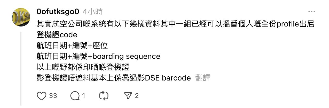 5️⃣ 網民紛紛將港爸的 Threads 截圖,嘲笑港爸被盗用了登機證資料而不自知