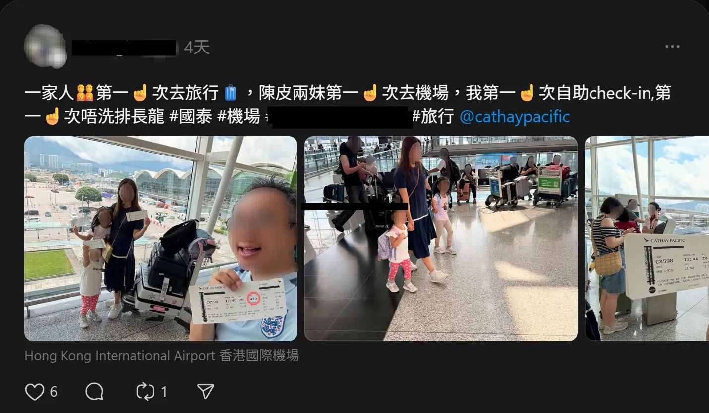 1️⃣ 一名港爸首次一家四口外遊,太過興奮於Threads公開一家四口在機場自拍
