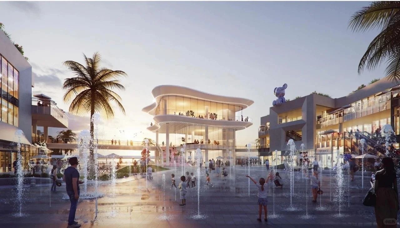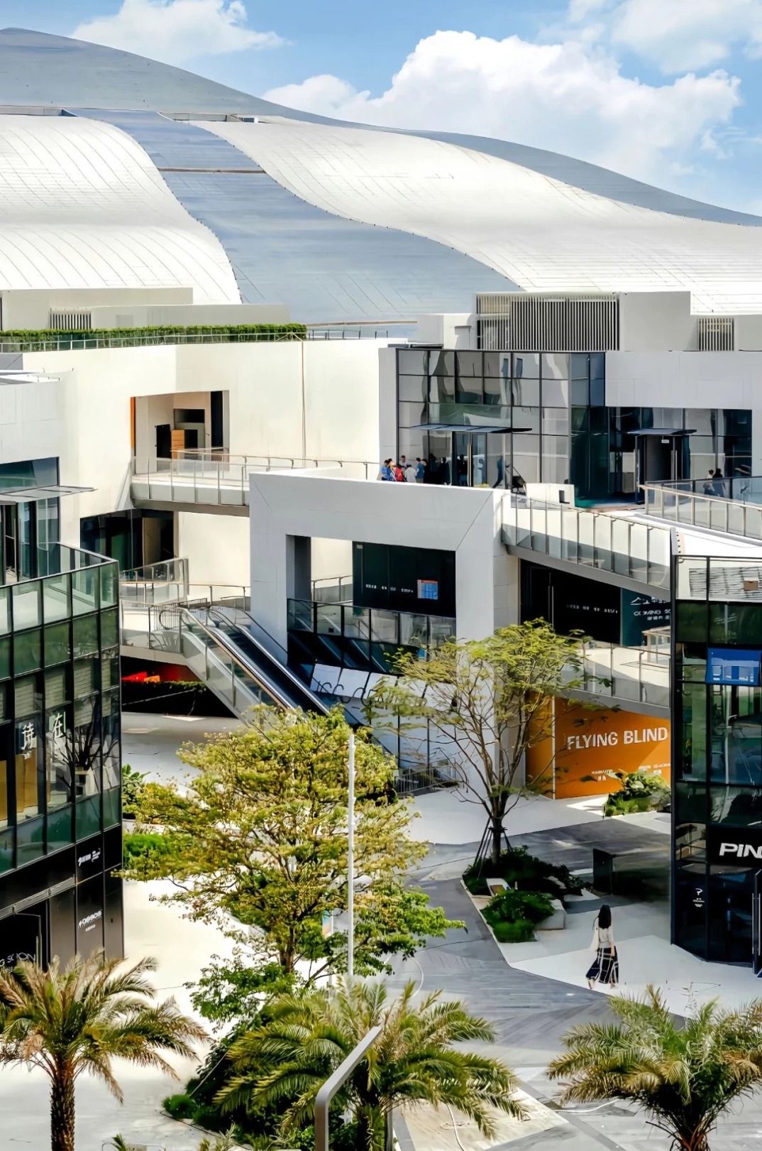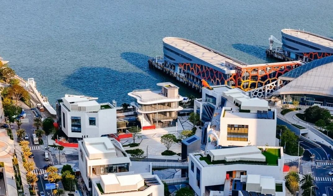 街區以「山海城」為靈感,以建築融入海濱為主題,8幢純白建築物有空中連廊與觀景平台,可直望大海,有別一般商業街區的商場味道。