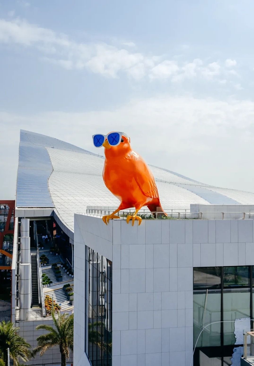 街區最矚目就是3隻站在屋頂上的巨型金絲雀,分別是法國藝術家洛朗佩爾的橙色金絲雀《CUICUI》、中國藝術家郭銳文的《涌動瞬息》以及馬來西亞燈光藝術家王俊豪的《OURA》。