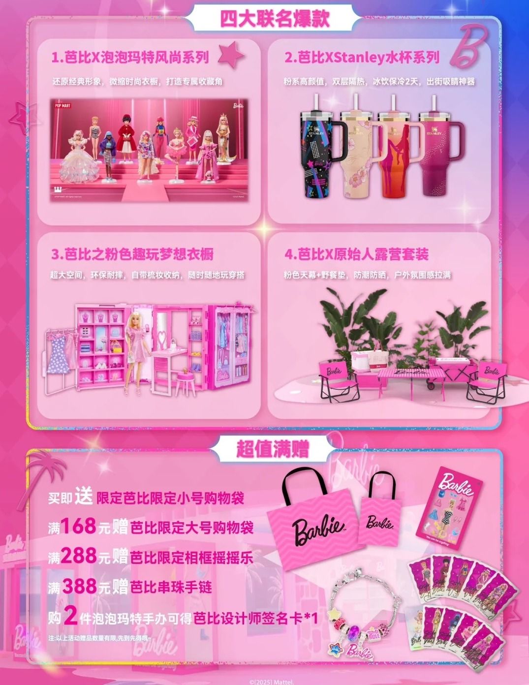5️⃣ 其他限定周邊產品:現場匯集了經典款芭比娃娃及多款限定產品,涵蓋潮玩盲盒、美妝、家居、3C數碼產品等