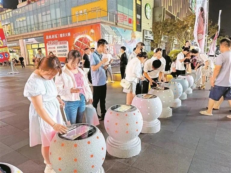 📱路人只要將支持無線充電功能的手機放在石墩上的無線充電區域,手機便自動充電。