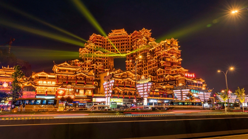 【第 4 日-享酒店早餐、苗王宴午餐、 72 奇樓景區自理晚餐】遊覽鳳凰古城虹橋藝術街、吊腳樓群。結合了古建築和現代藝術的特色街區,以其獨特的氛圍吸引著遊客。吊腳樓群則以其獨特的建築風格,依山傍水,呈現出別樣的古樸風情。再到「國家 4A 級景區」苗王城及張家界七十二奇樓遊覽。
