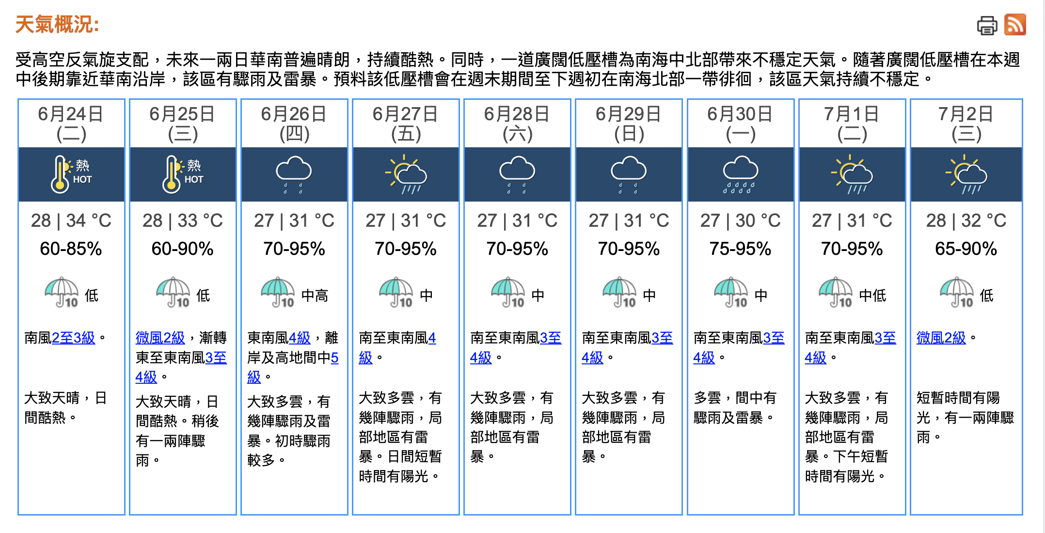☀️6/24-25(周二至三): 大致天晴,持續酷熱