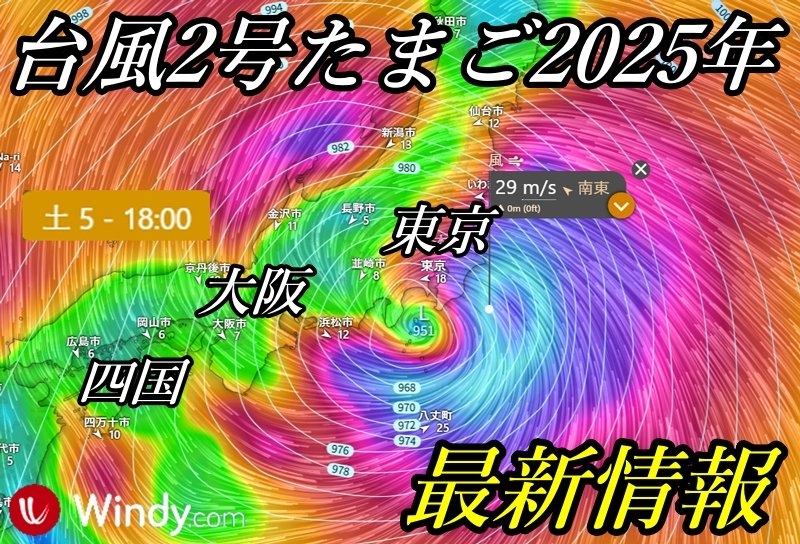 ⚠️ 6/25(三) 晚間9點後:以30節風速💨逼近關東地區