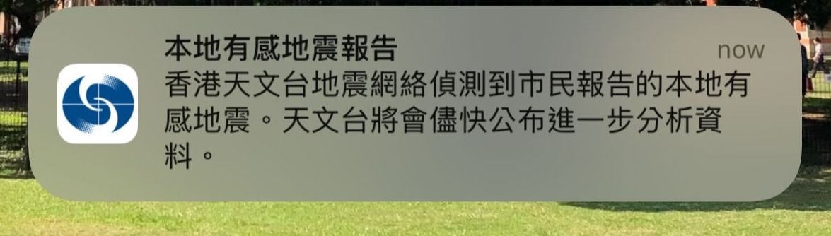 香港天文台接獲超過100名市民報告,表示感到這次地震,震動維持數秒。初步分析顯示本港的地震烈度為修訂麥加利地震烈度表的第III(三)度,即室內有感,類似小型貨車駛過的震動。