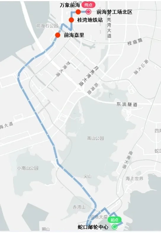 🚏 停靠:前海嘉里、萬象前海等,桂灣地鐡站(直達亞洲首座濱海 K11,還能打卡海上世界燈光噴泉)
