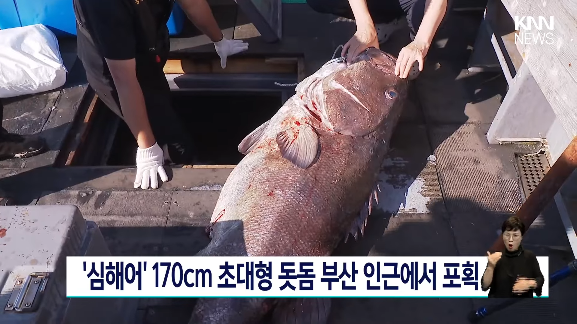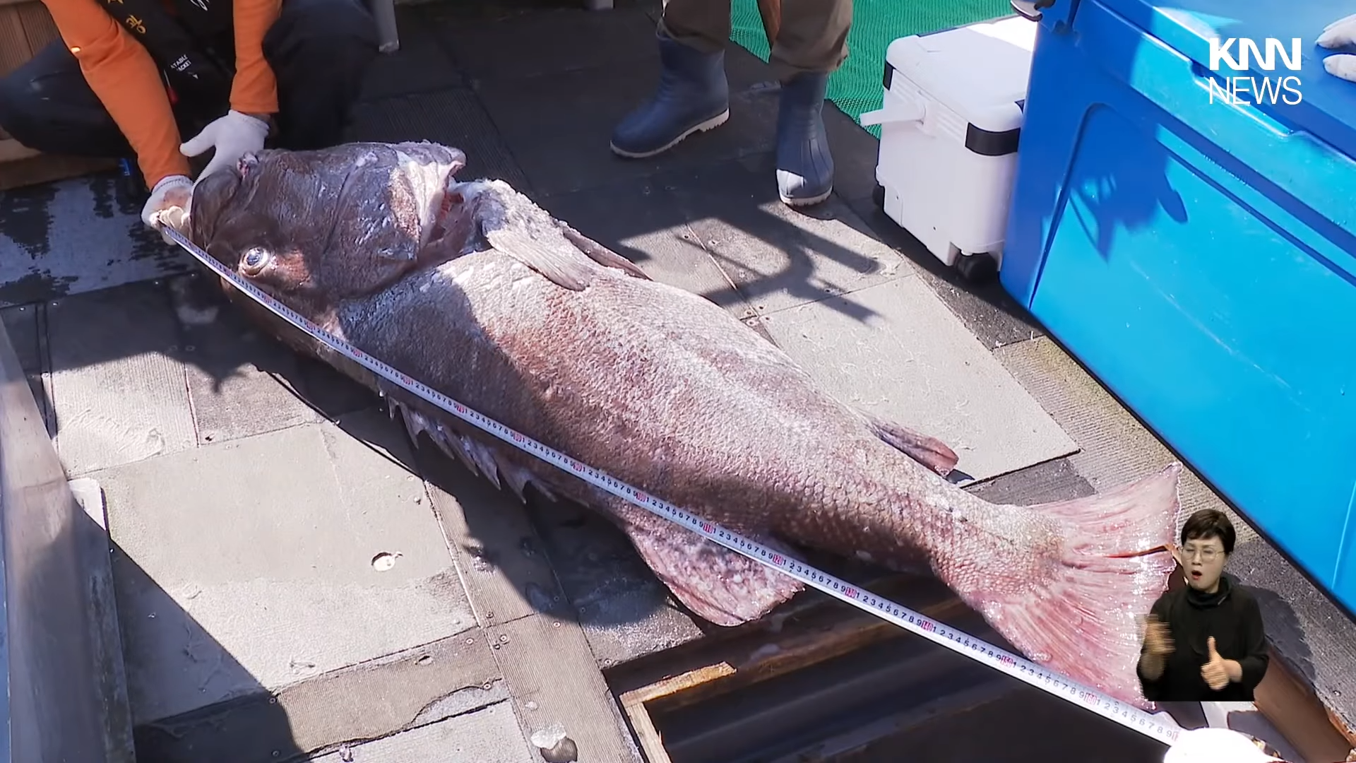 據韓媒KNN報導,近期釜山海域頻繁捕獲極度稀少、被稱為「傳說中的深海魚」的巨型石鯛,引發關注。本月23日,漁民在釜山附近的朝鮮海峽中心地帶捕獲一條長度與一名成年男子高度相約、達170cm米的巨型石鯛,這已是今年在釜山附近捕獲的5條。石鯛一般在棲息於深海暗礁區、難以釣獲,2025年五度現身,加上近3天內日本海域發生近300次地震,令韓國網友懷疑是否日本大地震前兆。