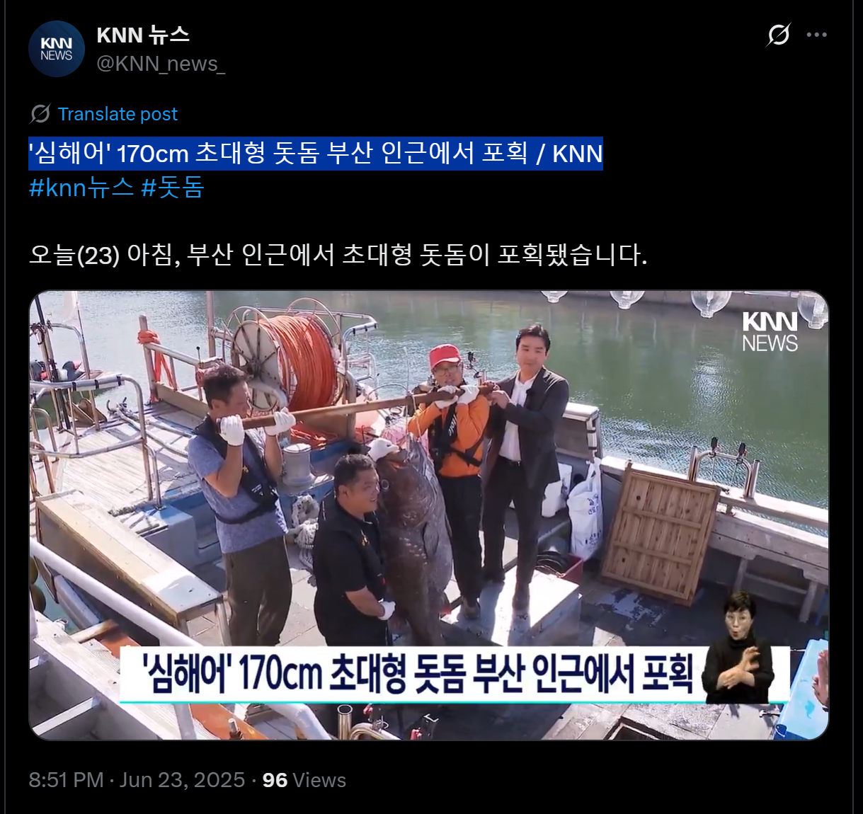 ⚠️ 韓國不少網友認為釜山頻繁捕獲深海魚可能是日本大地震的前兆。