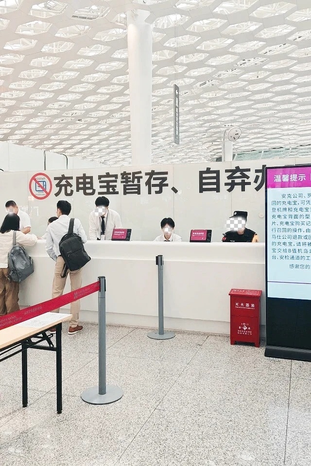 深圳寶安機場對應不合規無法攜帶乘機的充電寶,提供免費寄存、快遞收運、召回申請等多項服務。