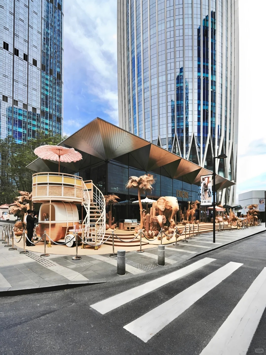 2️⃣ Dioriviera實體森林🦒|亦將品牌經典袋款Dioriviera系列經典印花變成實體打卡位,包括巨型棕櫚樹🌴草編的長颈鹿🦒大象🐘獅子🦁等。