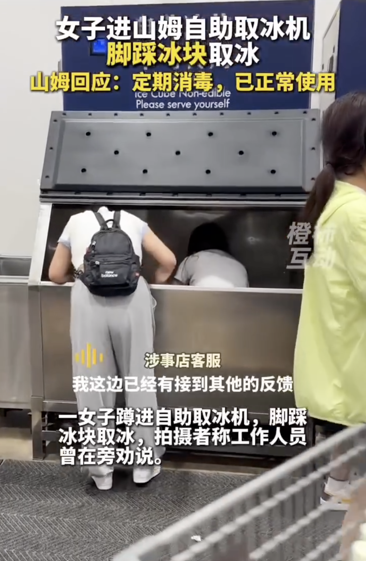 國內女子蹲入山姆自助取冰機|山姆官方回應