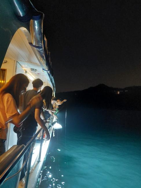 今次唔單只介紹大家參加一個釣墨魚團,大家透過以下連結預訂就可以有買一送一優惠,折段人均HK$188位。費用包齊講解員、釣魚工具、即釣即煮、飲品一包、遊艇第三者保險及旅遊平安保險,夠晒方便!講解員會教你釣墨魚小技巧,用螢光八爪鉤提前喺燈下吸光,將線放到 6 米深度左右,喺活躍區域時不時提動吊鉤。感覺到有墨魚咬鉤,就快速收線,等魷魚喺水面吐完墨,再提上岸。