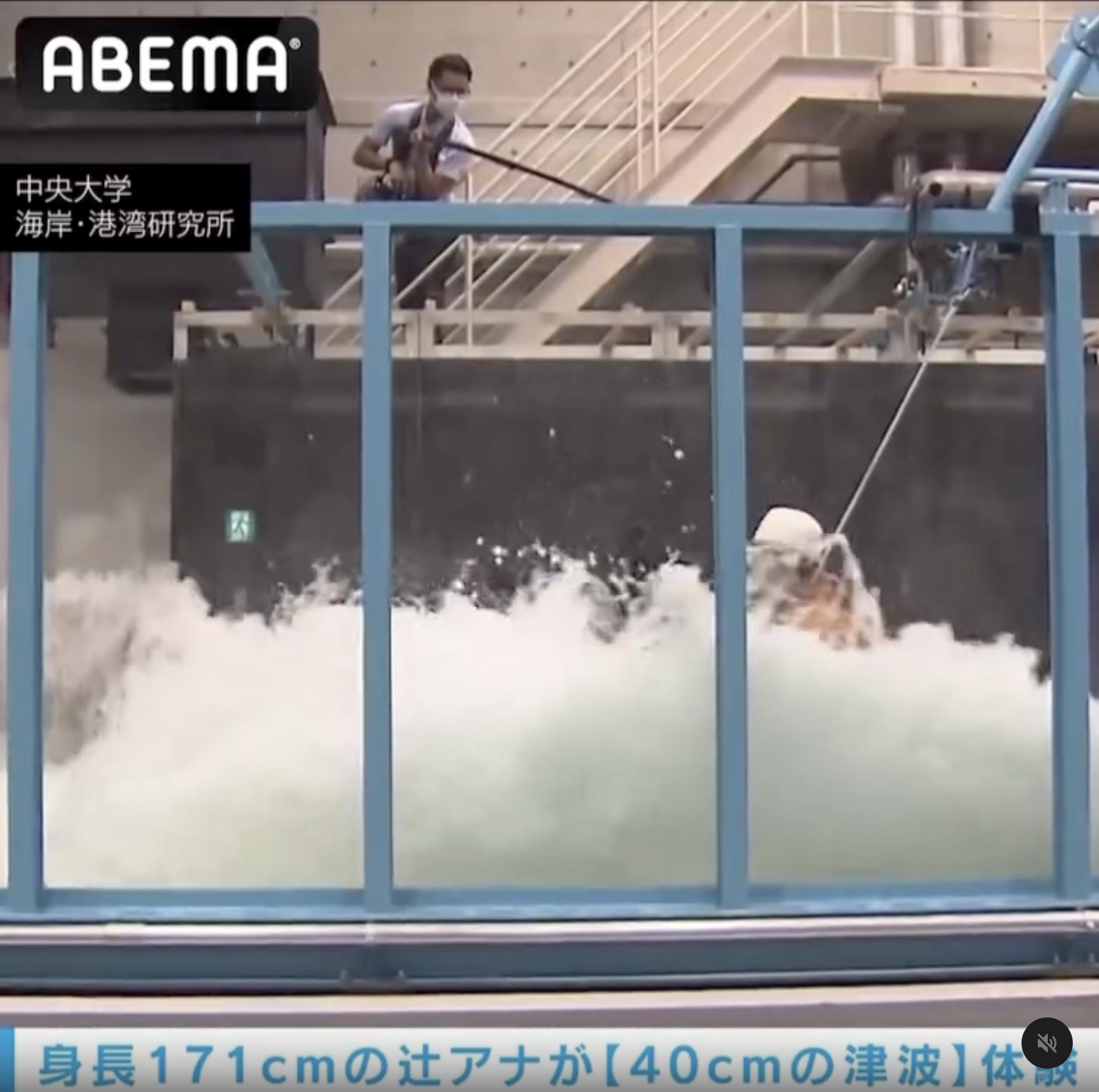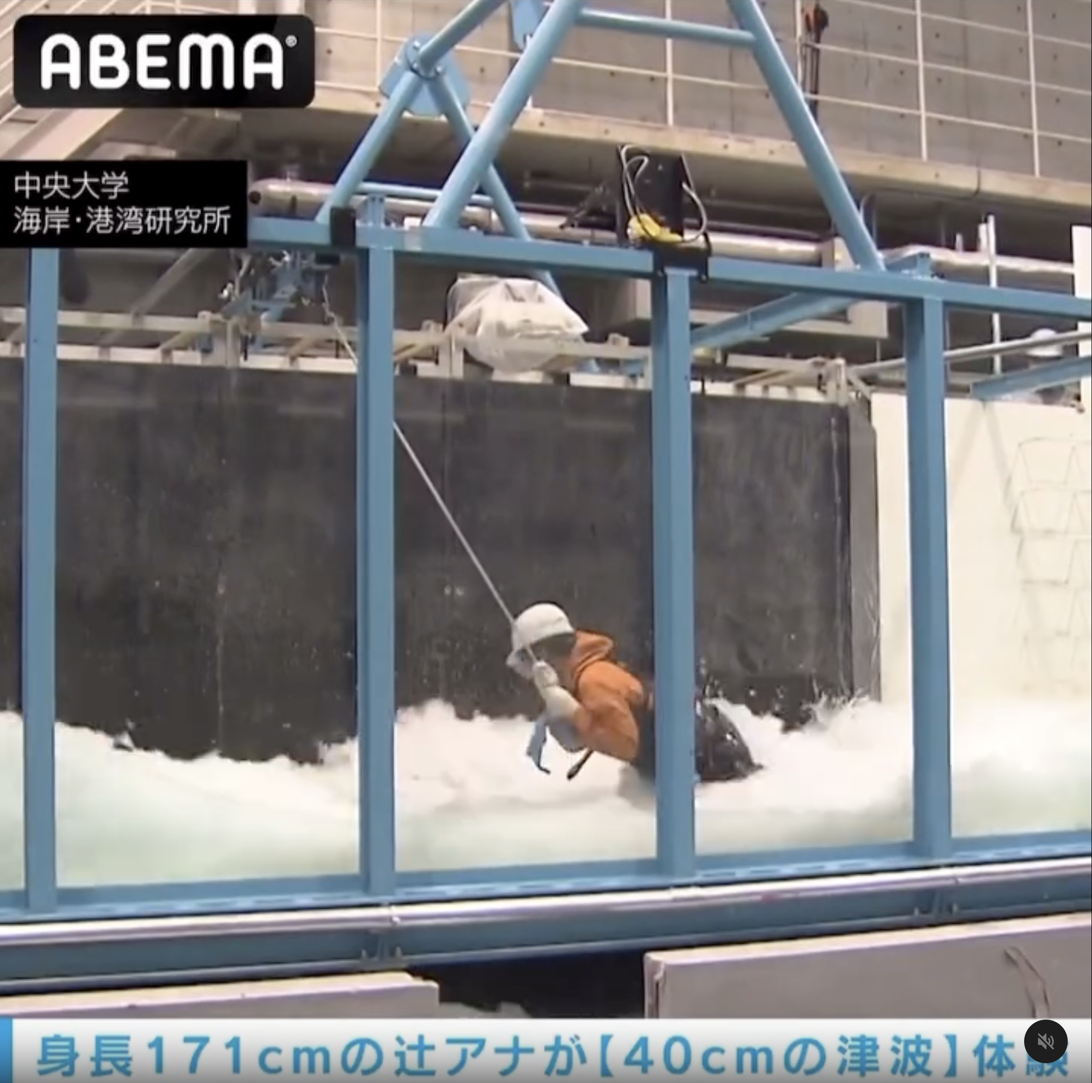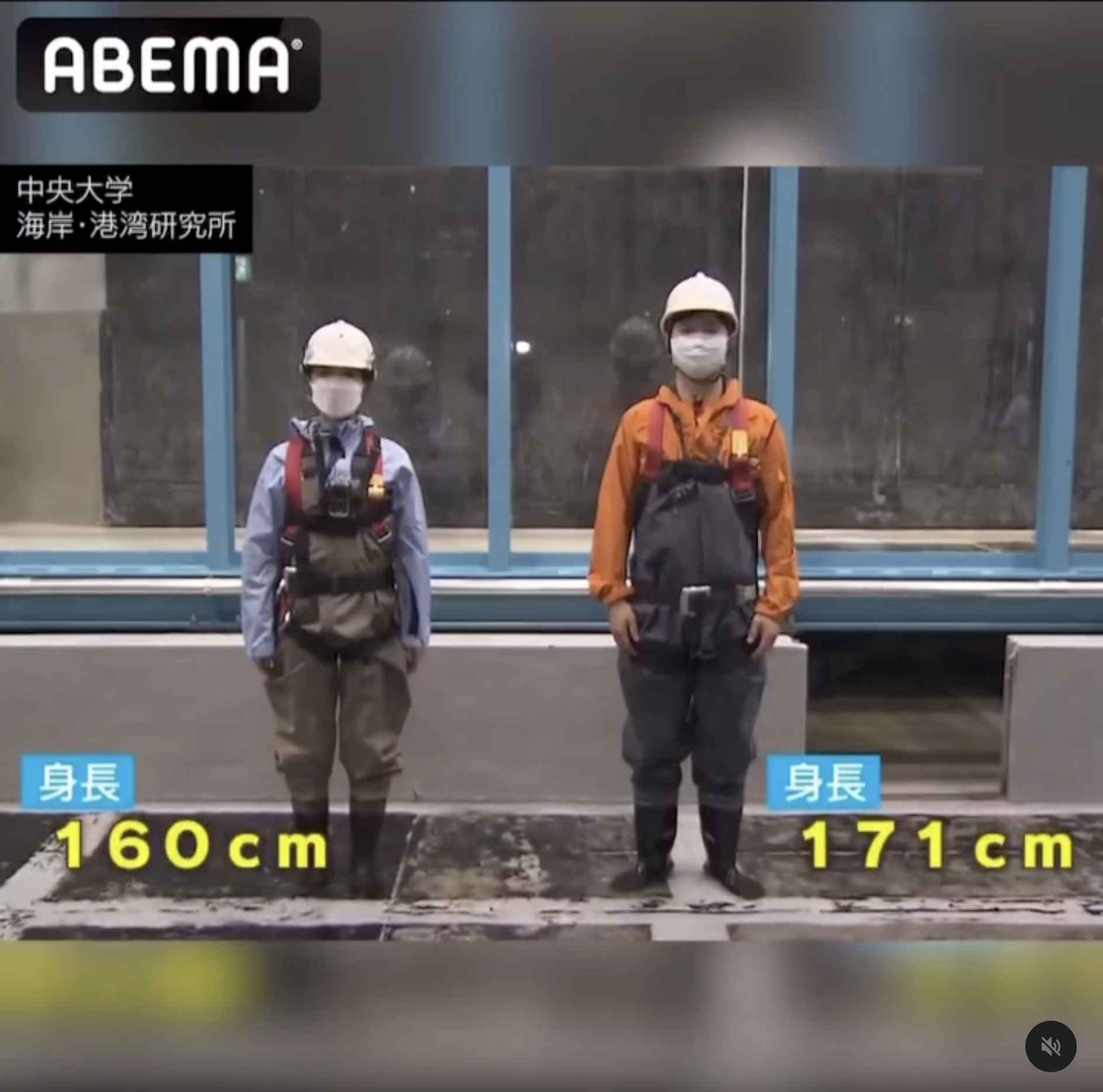 📌「報地震-中央氣象署」表示日本港灣空港技術研究所針對海嘯做過一項模擬實驗,研究讓 20 名成年男女站在大型水槽並模擬海嘯來襲,男女性被沖倒的情況,列出海嘯高度和死亡率的統計數字。
