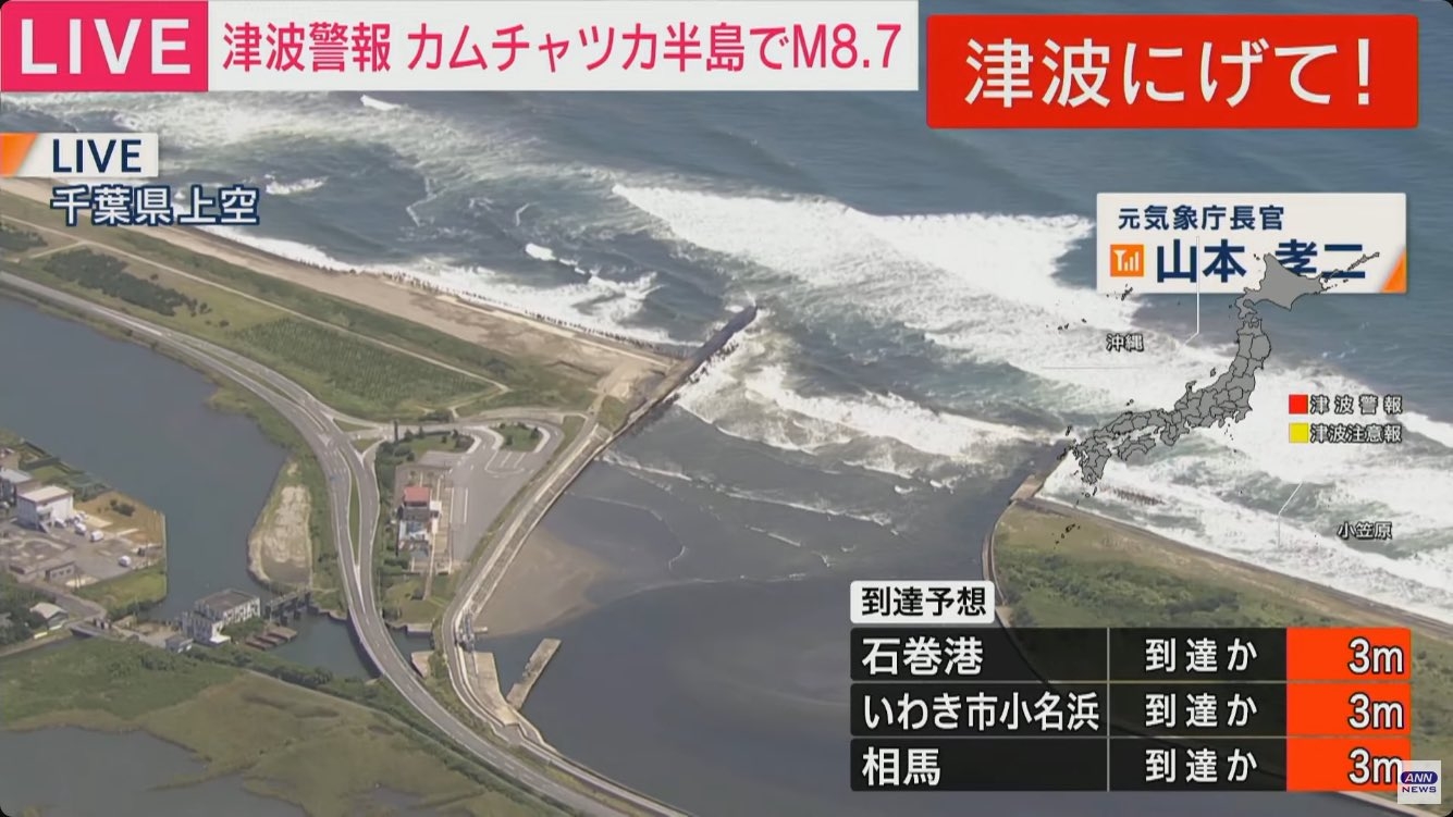 遊日注意|俄羅斯今晨發生8.7地震 日本大範圍發最高級別海嘯警報/福島核電站疏散/東北關東JR停運