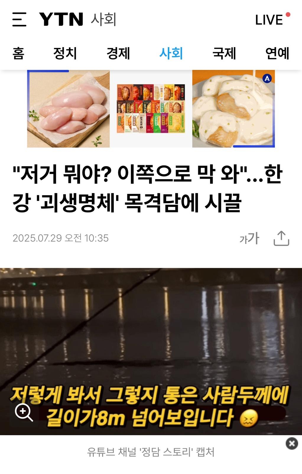 首爾漢江出現神秘水底生物|網民熱烈討論