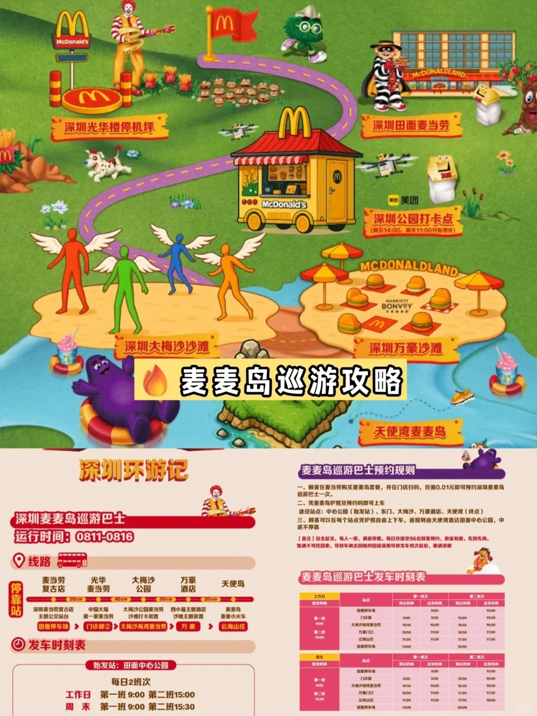 【港人北上/港人去深圳/福田區/深圳麥當勞/麥麥島/深圳好去處/麥當勞中國/麥麥大樓/大梅沙/金沙灣/天使灣/萬豪沙灘/麥當勞叔叔/小飛飛/漢堡神偷/滑嘟嘟】深圳麥當勞一向多搞作,最近一個大型活動就是「我去麥麥島啦」深圳期間限定活動(McDonaldland),全國7100間麥當勞都會加入這主題,而深圳更在福田、深圳灣公園、大鵬新區的金沙灣、大梅沙沙灘及天使灣等多個地標舉行期間限定的宣傳活動。