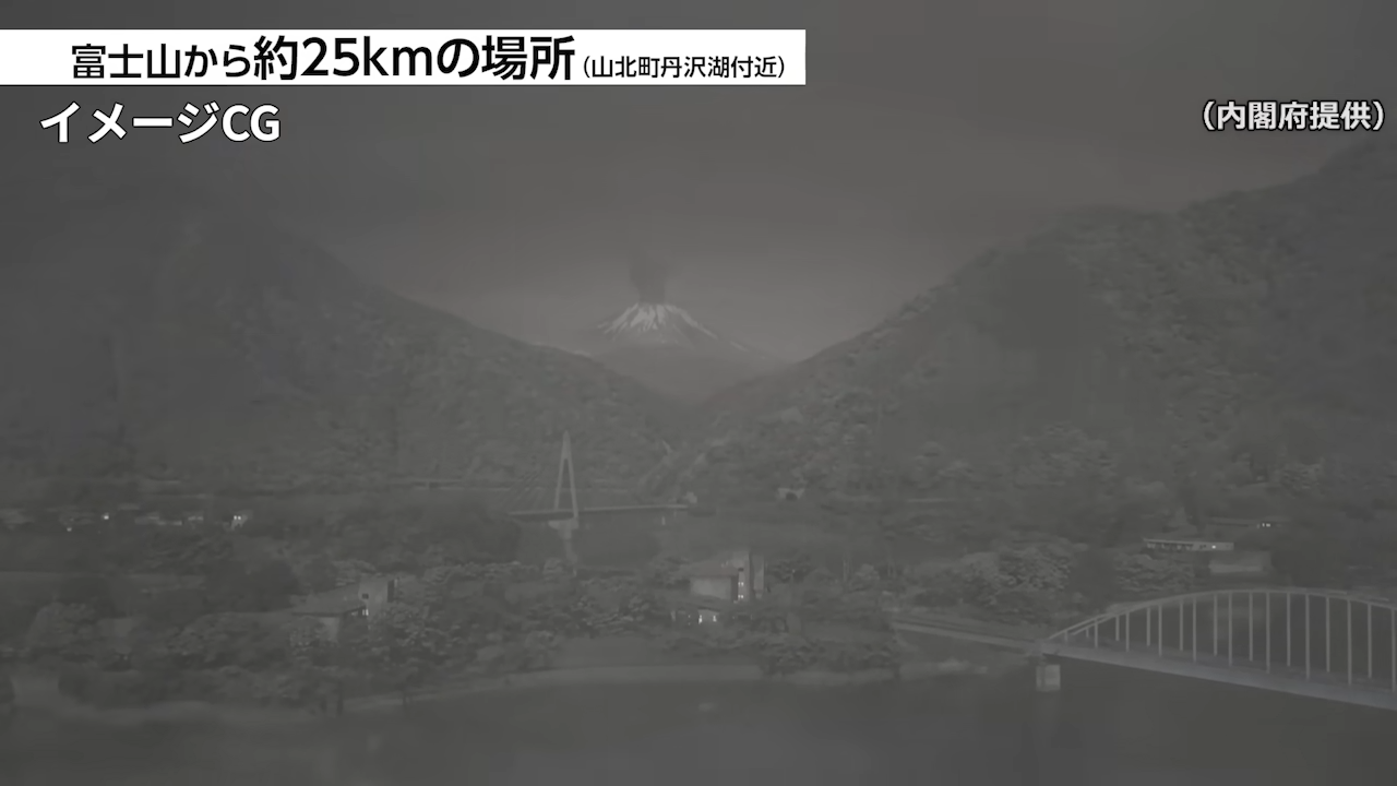 【日本天災/富士山爆發/富士山噴發/日本內閣府/火山防災日/天災預測/模擬富士山噴火】今年2025年8月26日是「火山防災日」,日本內閣府公開了展示一條約10分鐘、以AI生成的CG影片(模擬動畫影片)富士山噴火所帶來的火山灰等災害影響的,有專家指富士山已有300年未噴發,已累積超數百年的內部壓力,一旦噴發日本首都圈首當其充,全國亦會停擺,清理工作量更會是2011年311東日本大地震的10倍。