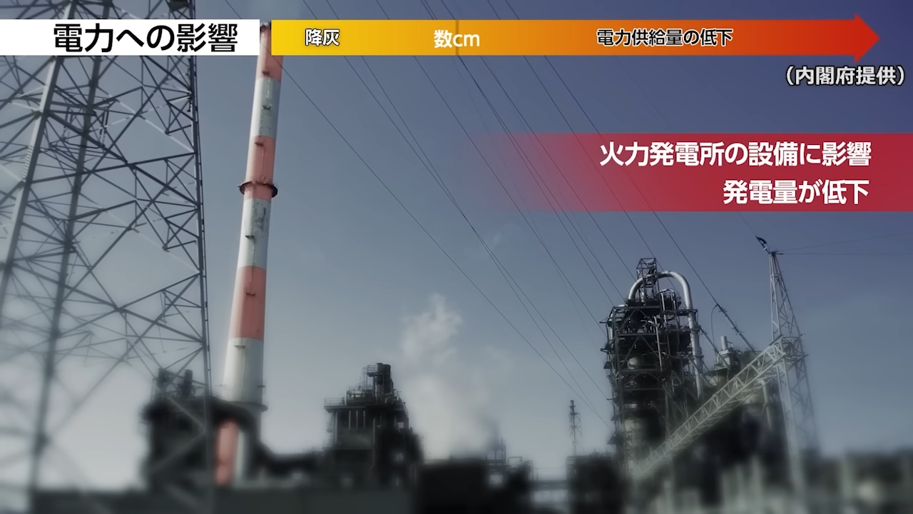 動畫中以富士山寶永噴火的規模作基準,模擬火山灰在噴發後數小時至幾日內迅速且廣泛擴散的情況,嚴重影響交通運輸、物資配送及基礎設施。