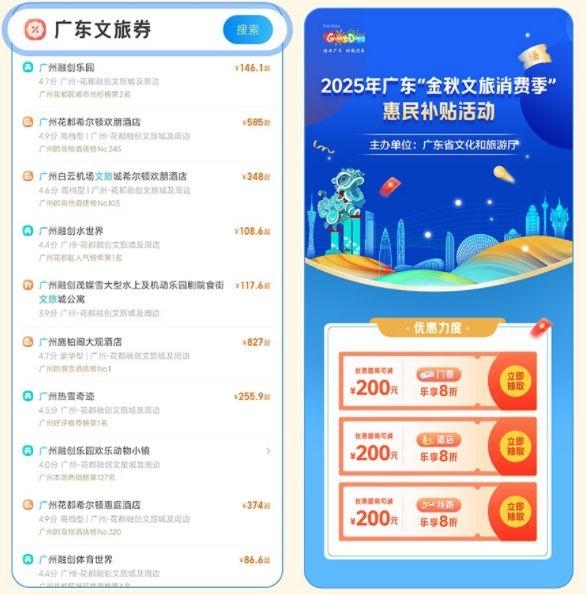 2025廣東省金秋文旅消費季惠民補貼活動|領取方式