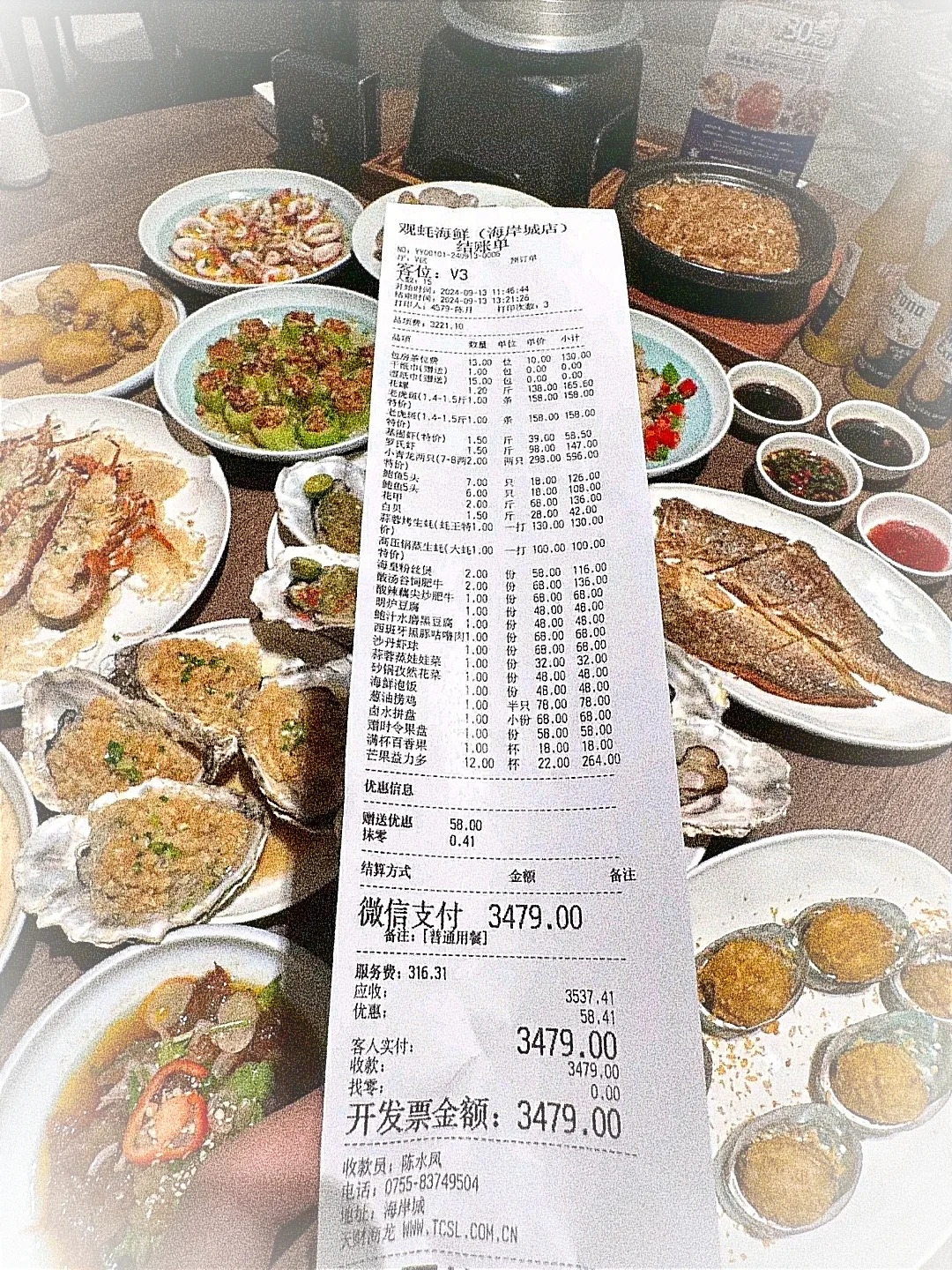 午餐約¥90-120,晚餐多人加蟹普遍¥150-180,比深圳熱門自助海鮮或撈海鮮更平,且單點消費無加一。