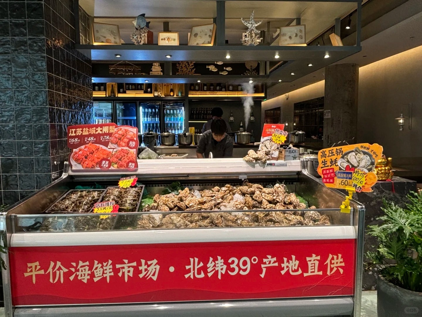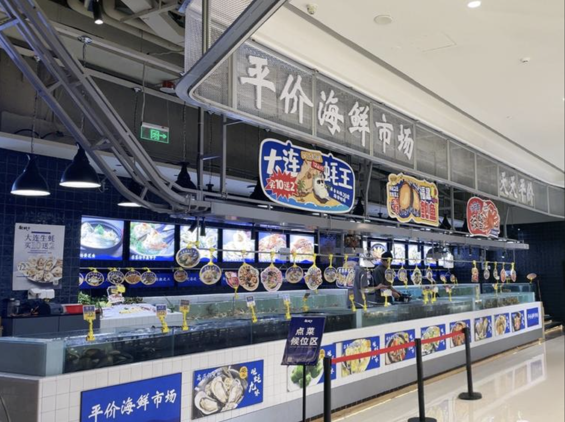 設置海鮮魚缸即場挑,落單後以「盒馬同款雙軌道」送廚,15-20分鐘內新鮮上桌。
