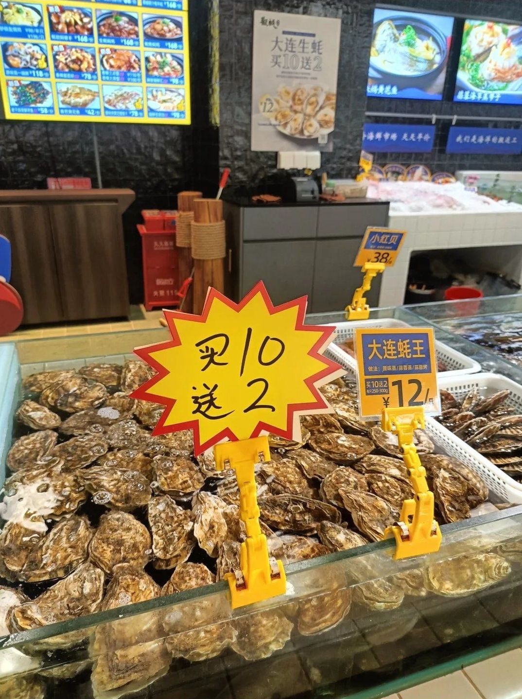 超過50款海產即場挑選,如帝王蟹¥198/斤,被稱為「深圳最平帝王蟹」;俄羅斯板蟹¥135、大連蠔王¥78六隻(不時買10送2)、小青龍¥198兩隻。