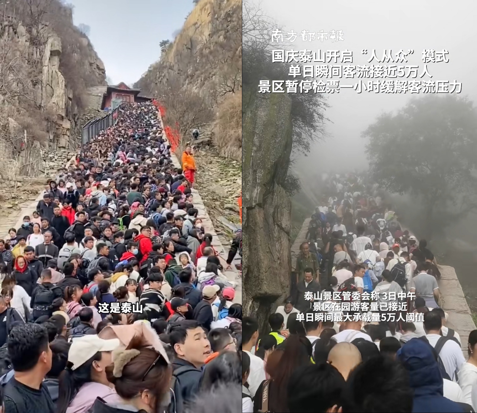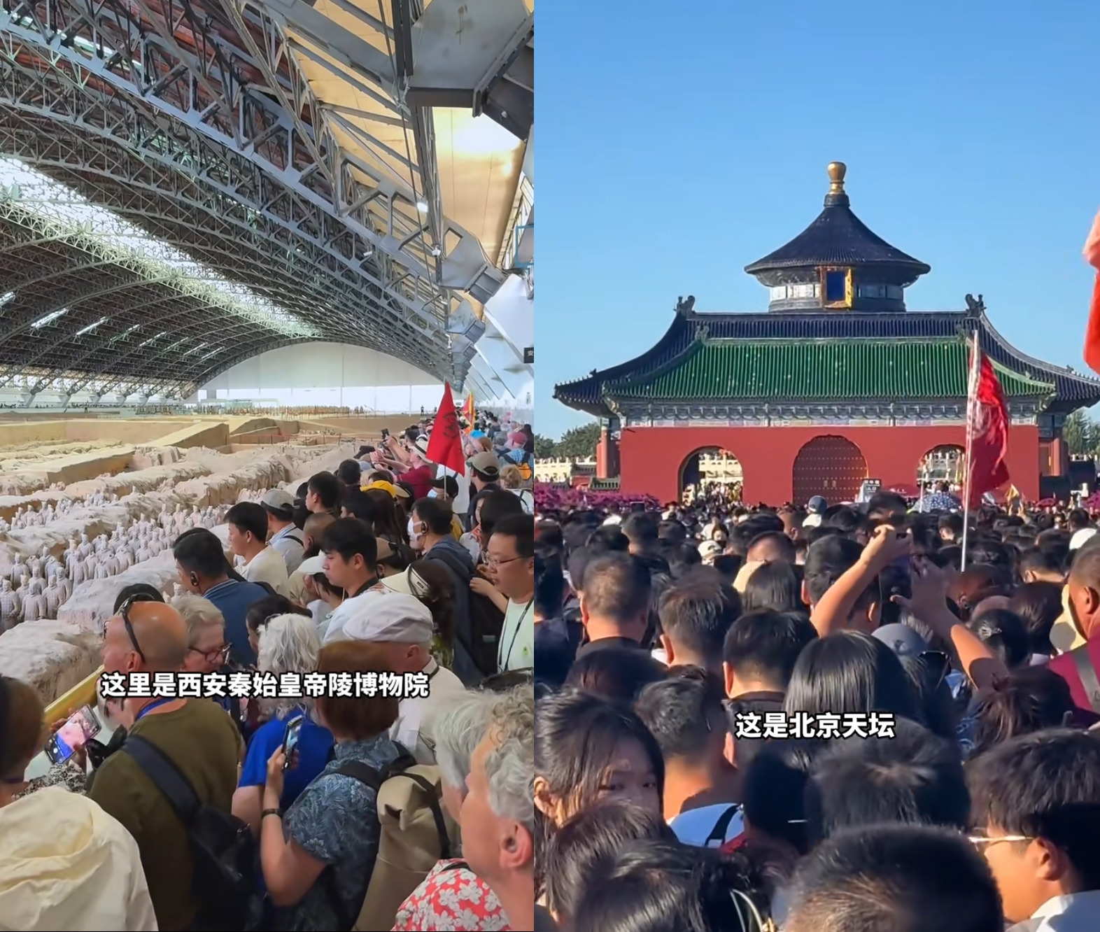【國內旅遊/十一黃金周/國慶假期/中秋假期/過度旅遊】2025年國慶中秋假期(10月1日至8日),全國主要景點普遍現人潮湧動、交通擁堵,尤其是假期首日(10月1日)大量遊客湧向各省著名景點,令重點景區客流指數飆升,包括故宮、兵馬俑、黃山、張家界、九寨溝等地,人流爆棚,網上更瘋傳不少震撼視覺畫面。部分景區已呼籲遊客提前預約、錯峰出行,以免陷入擠擁環境。官方預計,10月7日至8日將出現國慶假期返程高峰。