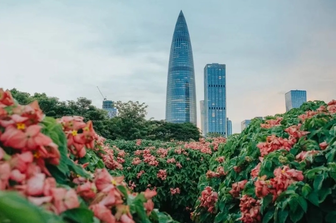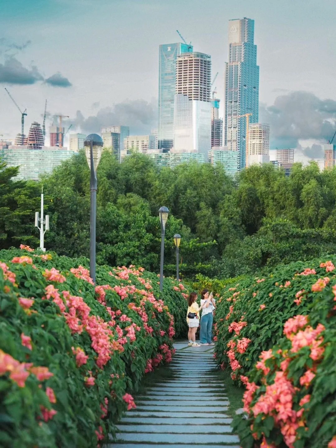 📸 取景位:利用坡度高差,低角度拍攝可同時收錄花海與南山區地標人才公園中的中國華潤大廈。