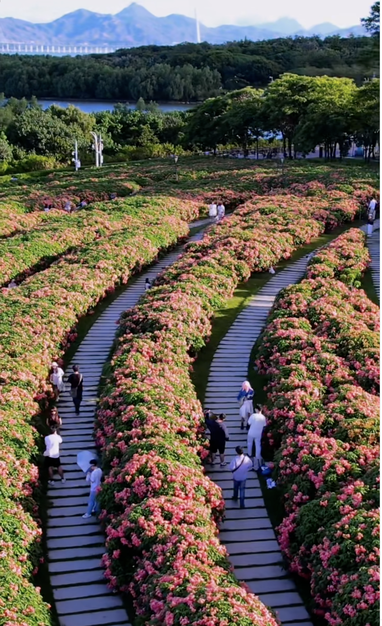 🔵 花海位於深圳灣公園-流花山核心緩坡,從公園北門進入後,沿主園道直行約300米即可見到。