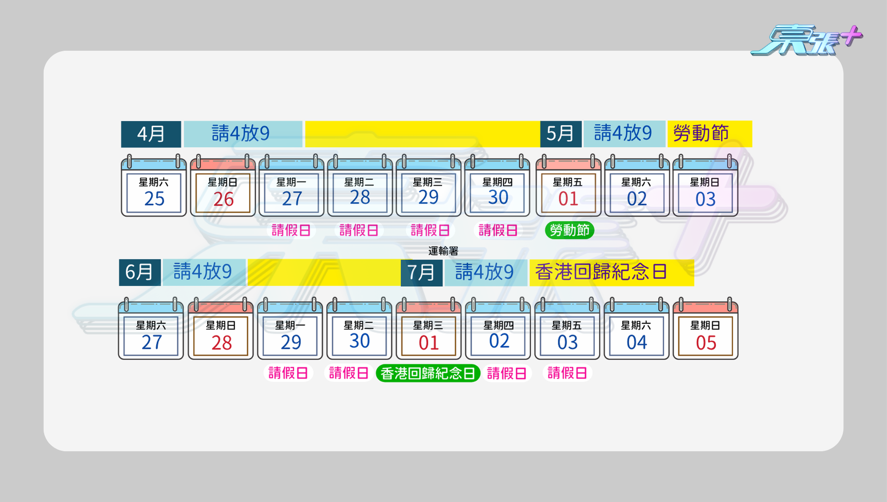 4️⃣ 香港回歸紀念日|請4放9