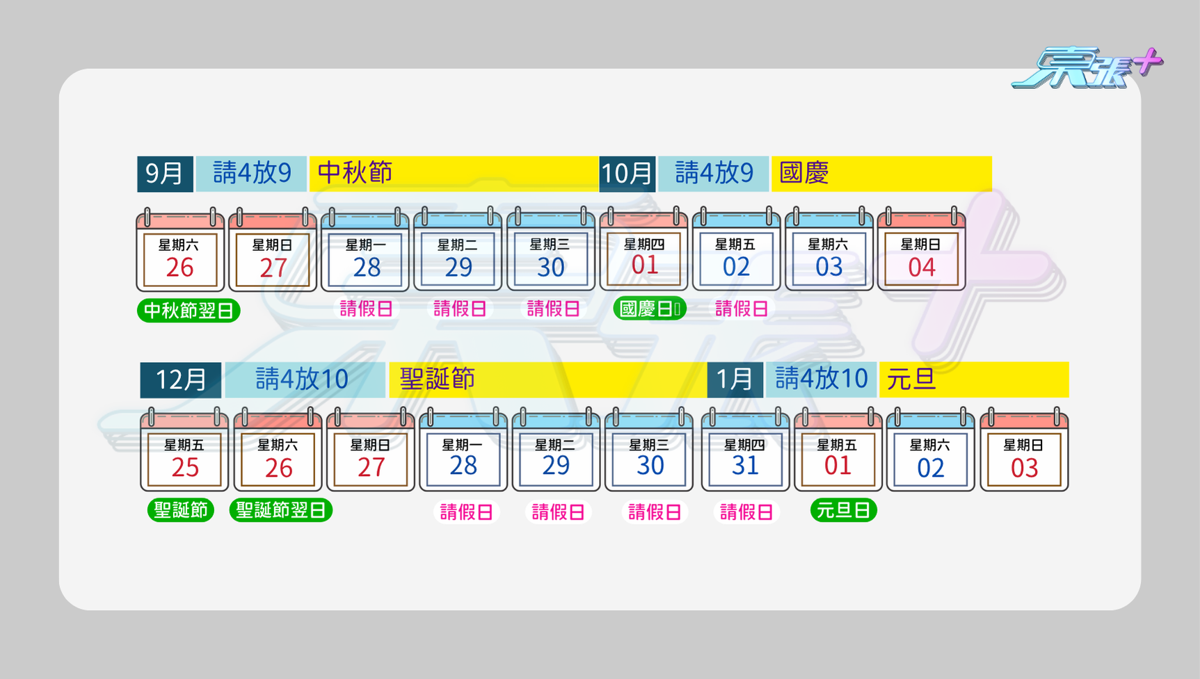 5️⃣ 中秋+國慶|請4放9日