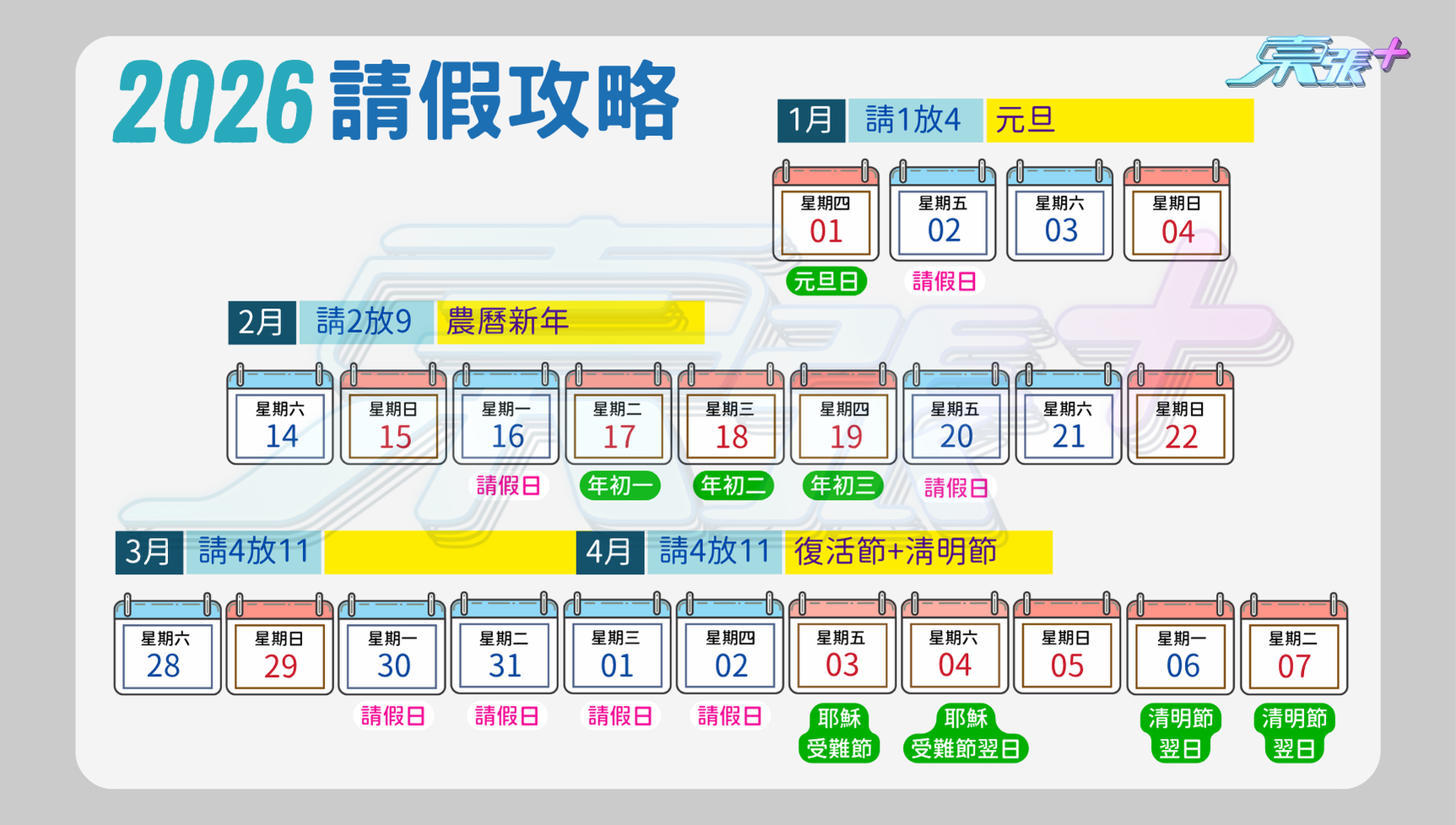 2026請假攻略|6大假膽/最筍請2放9+請4放11 新增一日勞工假/全年17日公眾假期