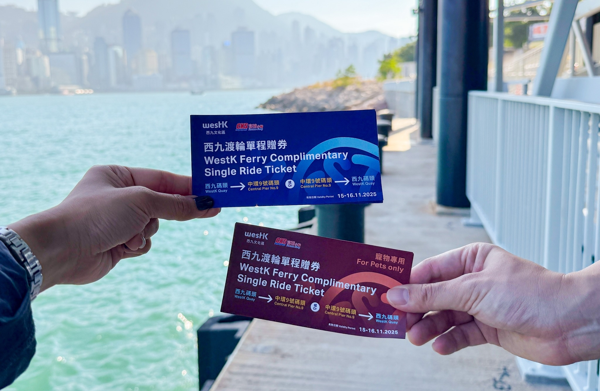 【香港好去處・西九渡輪・西九文化區・免費活動】西九文化區與中環新渡輪服務於11月10日起正式試運,船程約8分鐘,每30分鐘一班,設有冷氣船艙,更可攜帶單車及寵物(另須付費)。航班時間為星期一至五早上8時至晚上10時;星期六、日及公眾假期延長至晚上11時。為慶祝新航線啟航,於11月15及16日(首個周末)特別派發3,000張成人及500張寵物單程票,數量有限,先到先得!