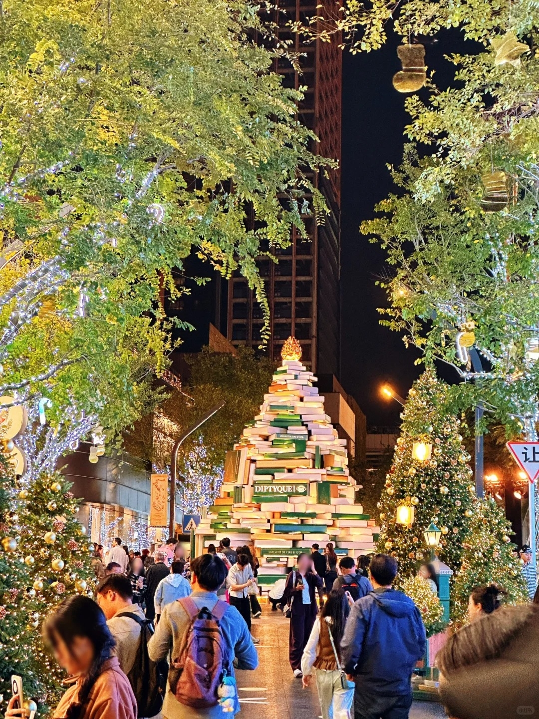 整條街變身「星願長廊」,兩旁滿滿聖誕樹+星空燈飾,隨手一拍就是明信片級別!整點還會有燈光秀。