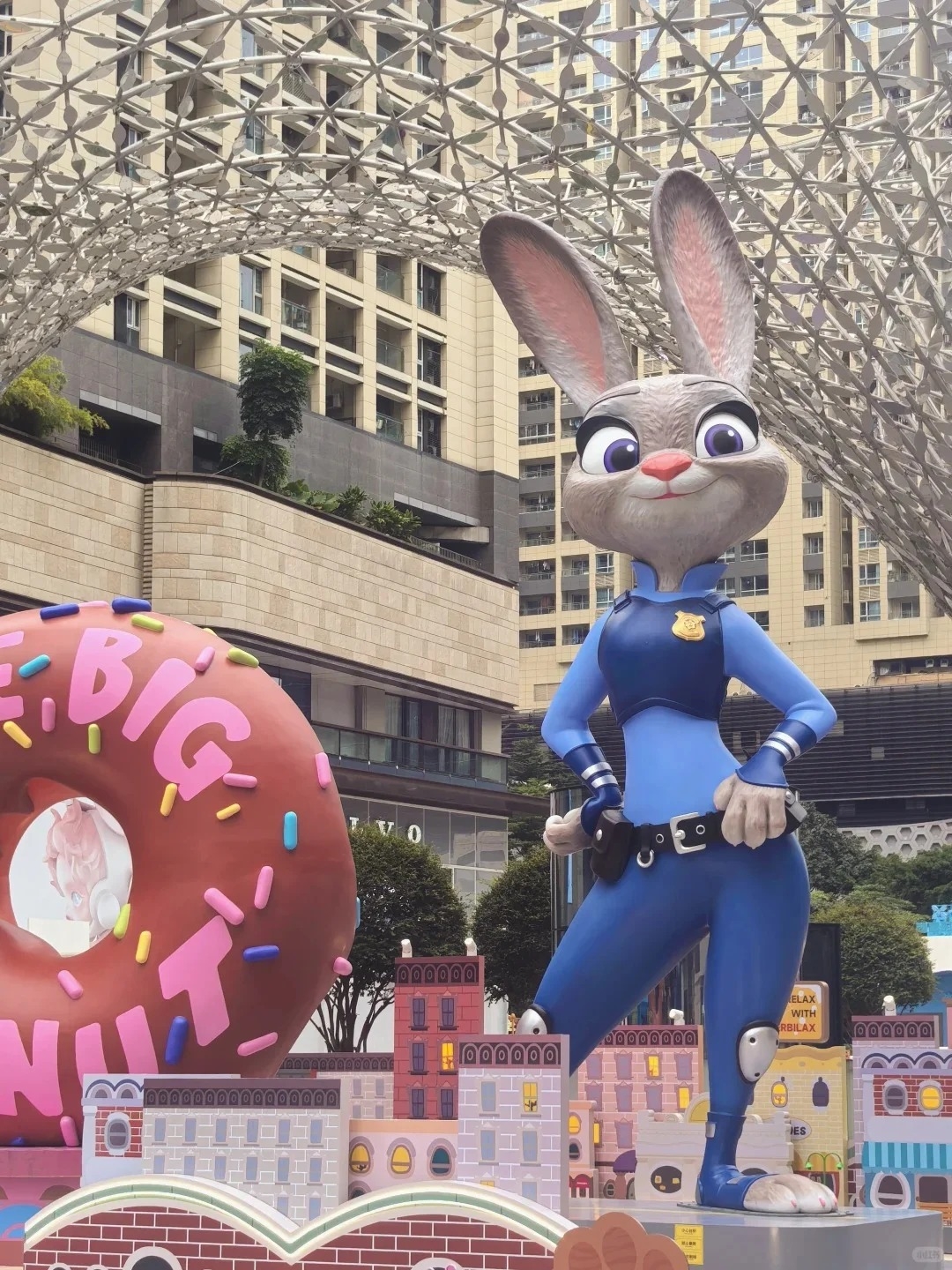 - 巨型甜甜圈燈光秀+超大兔朱迪 中央大街中庭,每晚定時有燈光+音樂+飄雪,超夢幻!