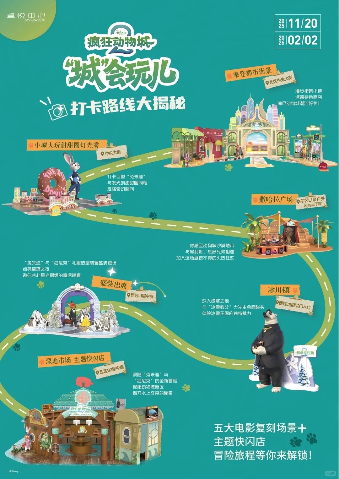 人氣動畫《優獸大都會2》全球票房大收42億港元,深圳福田卓悅中心有《優獸大都會2》華南商業首展「城會玩兒!《瘋狂動物城2》」(港譯:《優獸大都會2》)由即日至2026年2月2日全程免費入場!展覽神還原電影五大場景,包括巨型免仔朱迪(容祖兒聲演)、狐狸阿力(黃子華聲演)、甜甜圈燈光秀、冰川鎮、撒哈拉廣場等,每晚仲有飄雪+聖誕跨年活動,福田口岸過關坐幾個地鐡站就到,北上深圳玩不妨來打下卡。