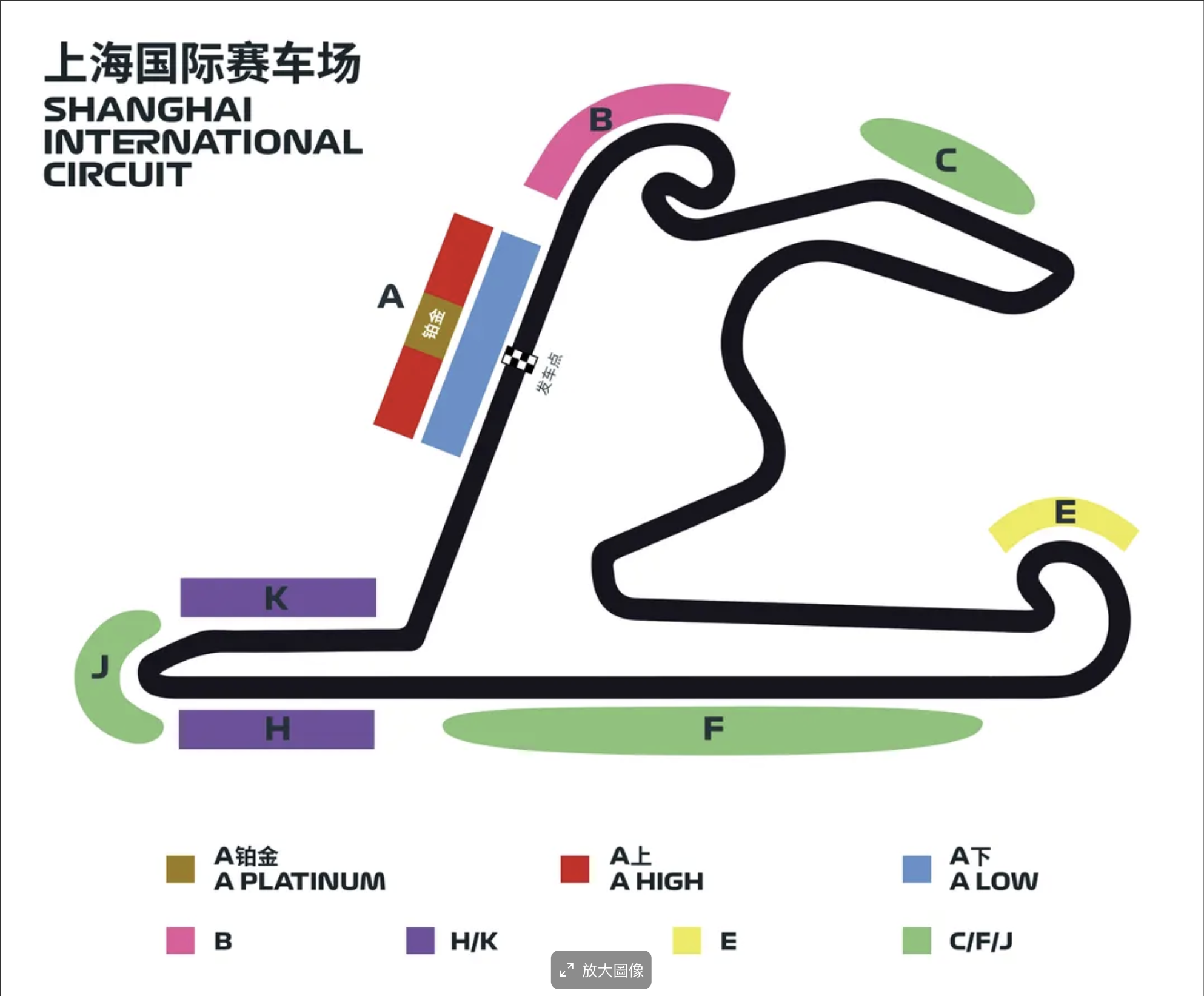 2026年嘅一級方程式賽車中國站,將會喺3月13至15號舉行,地點同以往一樣都喺上海賽車場。中國站賽事嘅觀看區主要分8個分區,睇到車房、起點衝線點嘅A區、睇到1至3號彎嘅B區,可以睇得較多賽道嘅C、E區、明年無得睇DRS大直路嘅F、H區,以及最後衝線嘅J、K區看台。