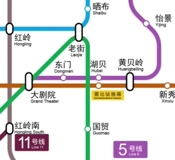 • 途經車站:黃貝嶺站、湖貝站、東門站、大劇院站