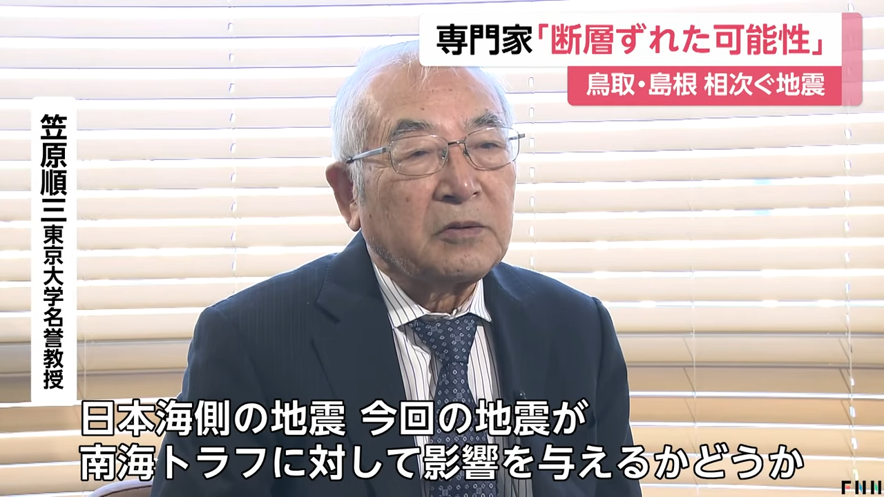 笠原教授表示最大憂慮:今次鳥取地震(即日本海一側地震動)會否影響南海海槽而出現聯動繼而引發大地震,是他最擔心之處。