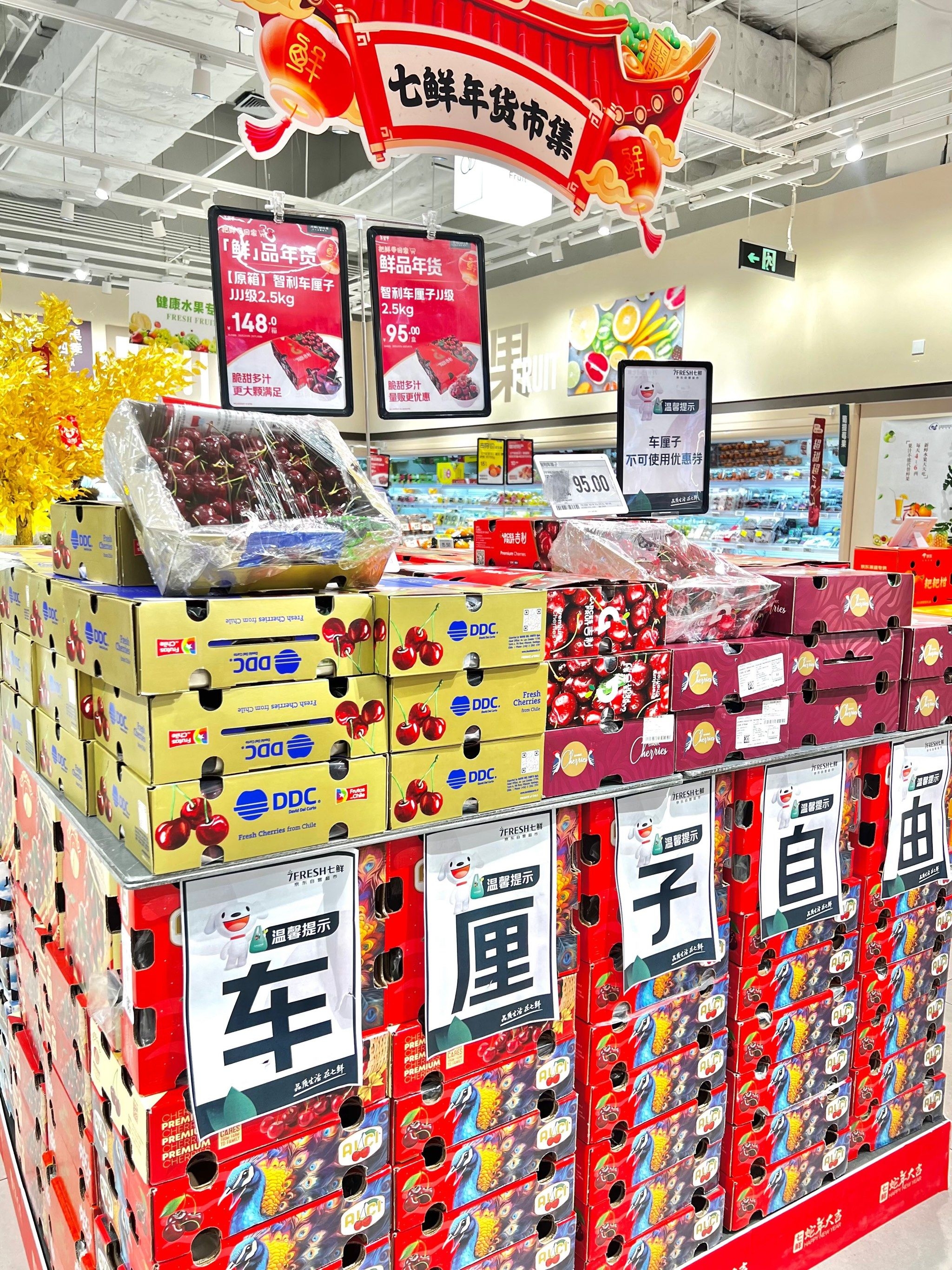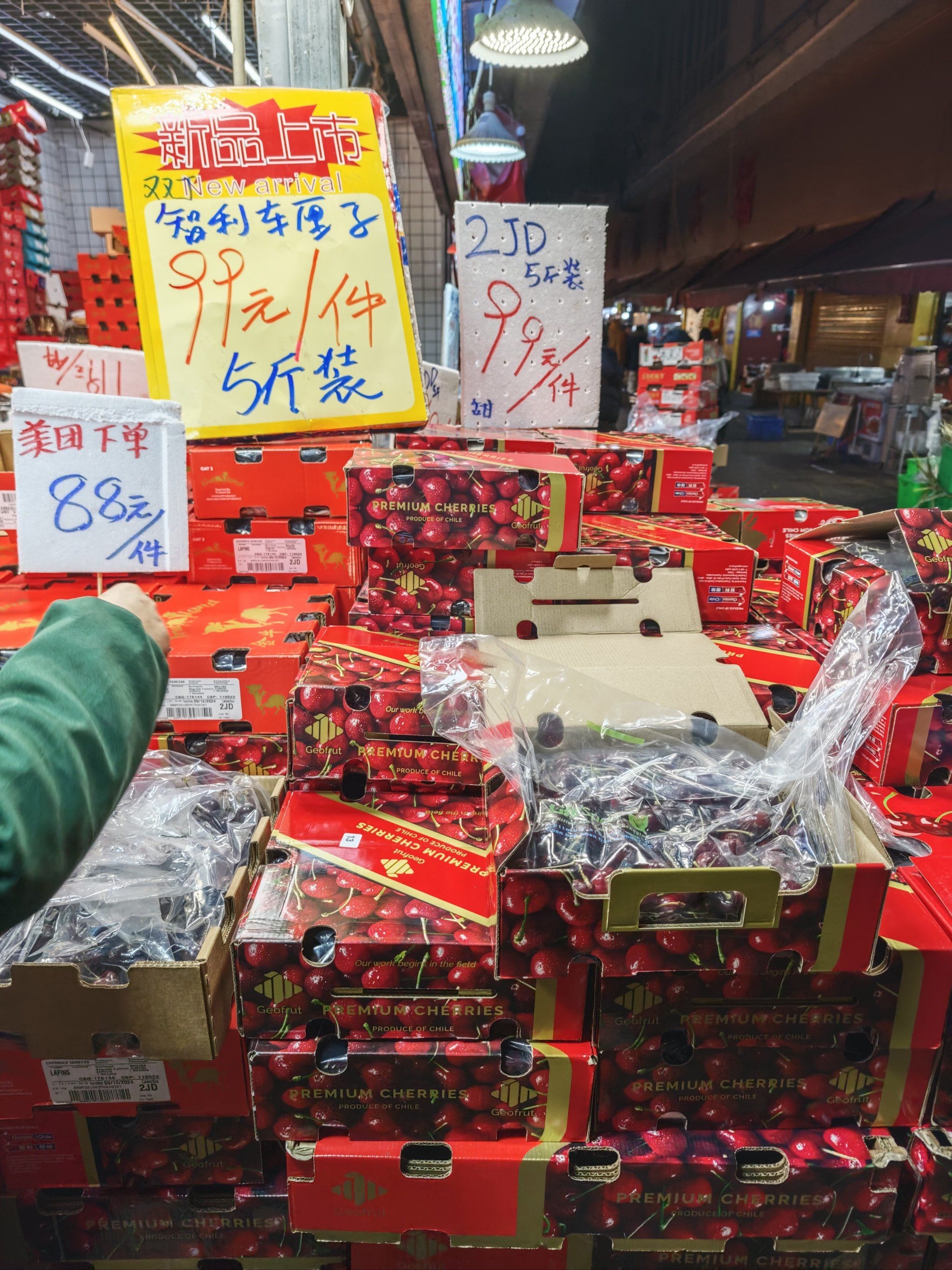 【北上消費/深圳買生果/深圳辦年貨】正當造的車厘子係貴價水果,現今流行的大Size品種(2J至3J級,直徑26mm-34mm)價錢一向高企,但今年居然出現大跌價的情況,唔止香港只賣百多元一盒,深圳平得更誇張!智利車厘子2J級價錢居然大跌40%,¥99買到5公斤,而且非「農批市場」價,在京東、盒馬生鮮或百果園超市用這樣的價錢都買到,港人北上不妨托返一兩盒返香港,農曆年前辦年貨更加應該買。外國車厘子價錢插水40%,這兩天更迅即成為國內熱搜。甚麼原因導至車厘子價錢大插水?喺深圳去邊度買平價智利車厘子?本文答你。