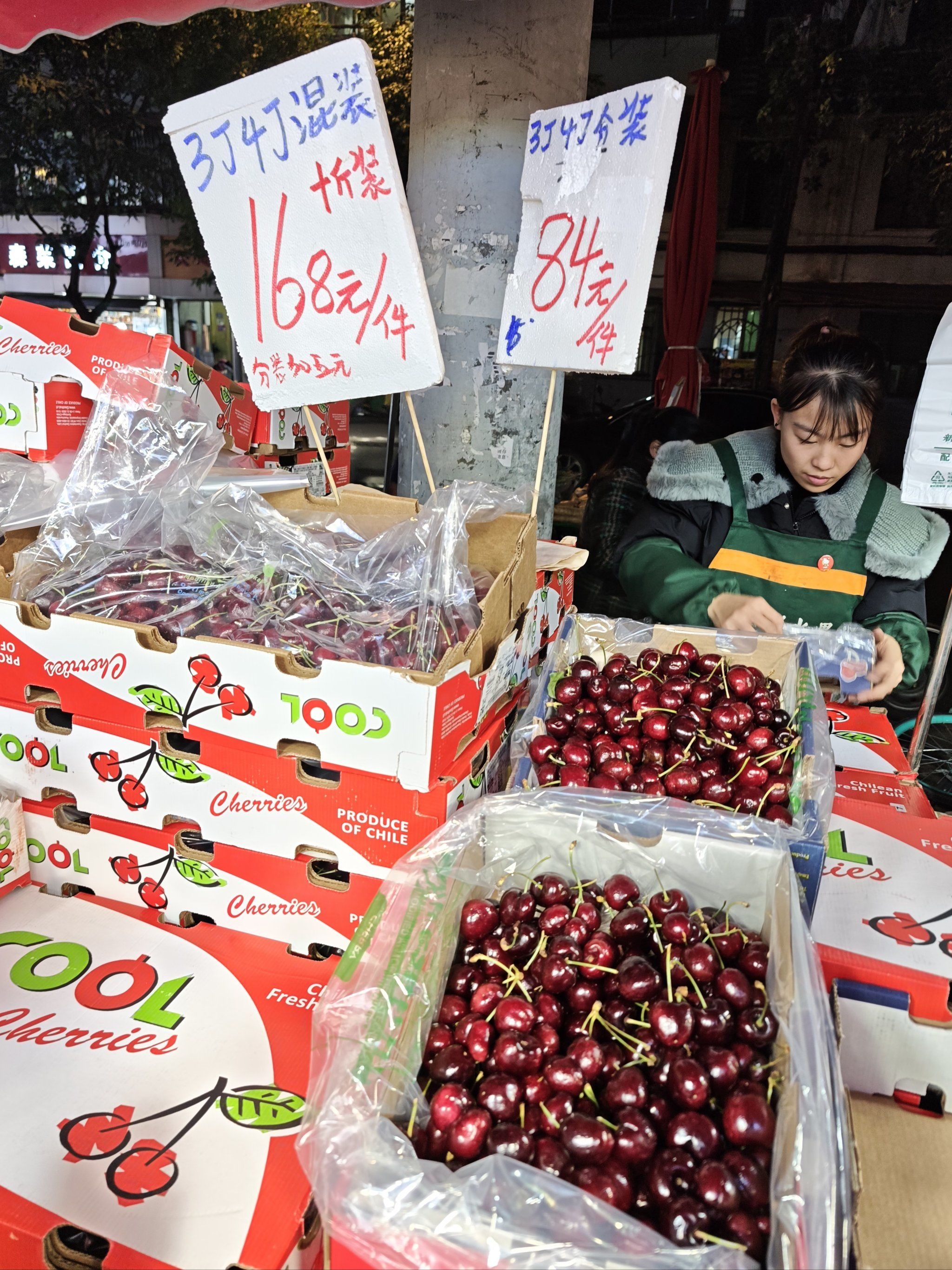 連鎖水果店遍布深圳,JJ級車厘子價格實惠,門市職員可協助揀選。