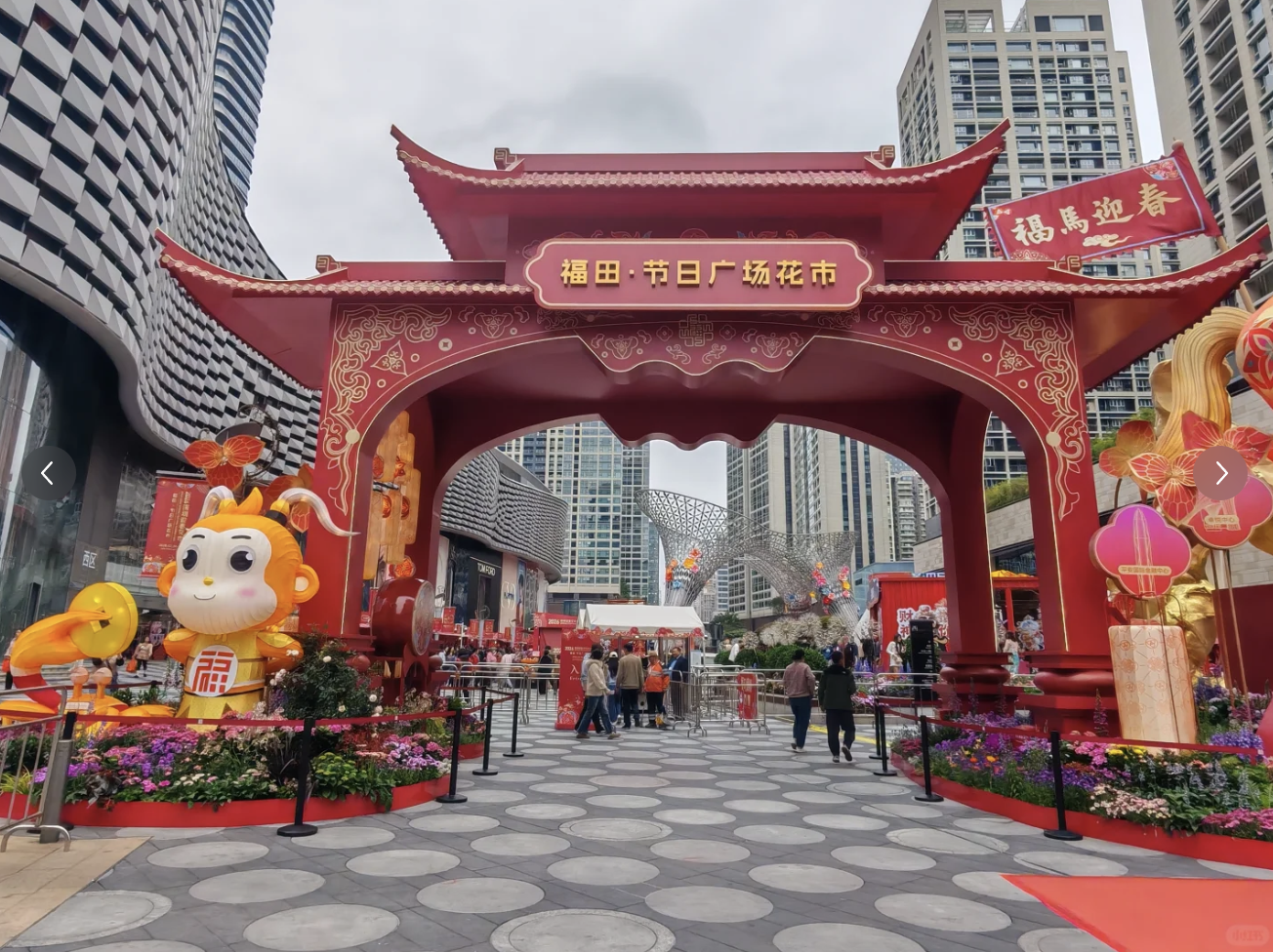 福田區花市位於節日廣場,佔地2.4萬平方米,超過200個攤位售賣傳統年花、國際文創和特色美食。從福田口岸過關後,直接乘搭免費巴士,超方便!